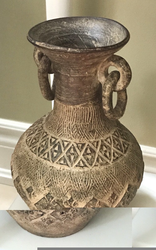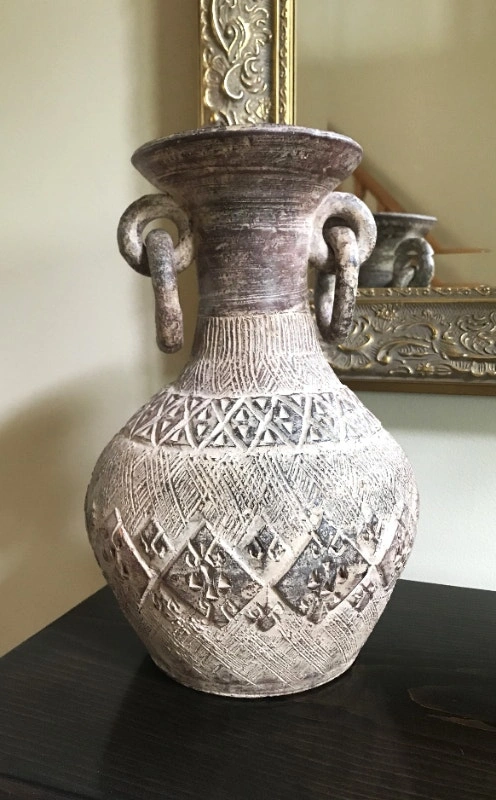 Mid 20th Century Latin American Tribal red clay vase with ring handles. Measurements: 7"Wx 10"H. In great condition. PU: Winston Churchill Blvd / Burnhamthorpe Rd W in Mississauga.