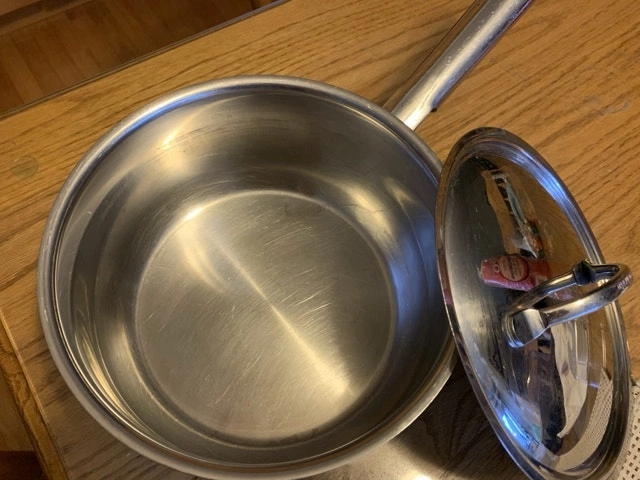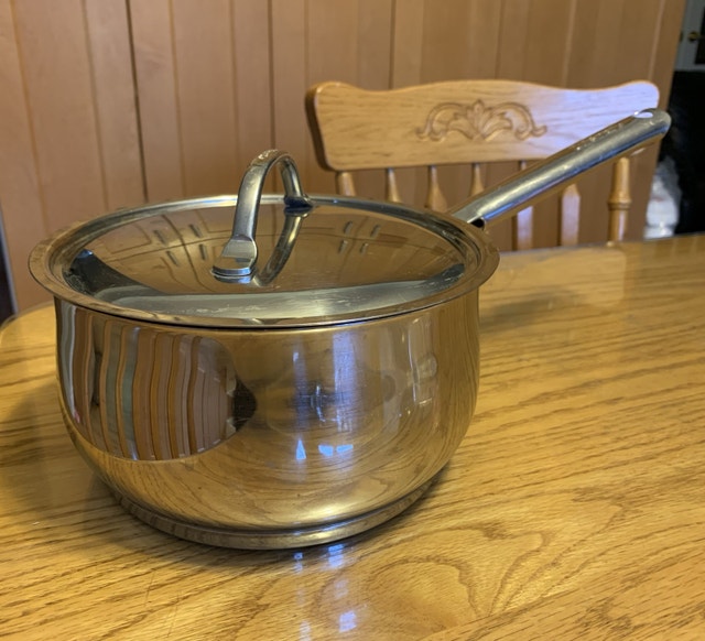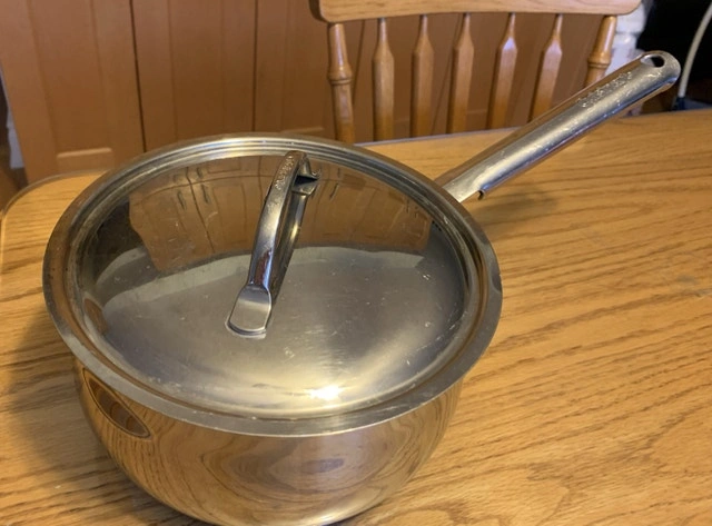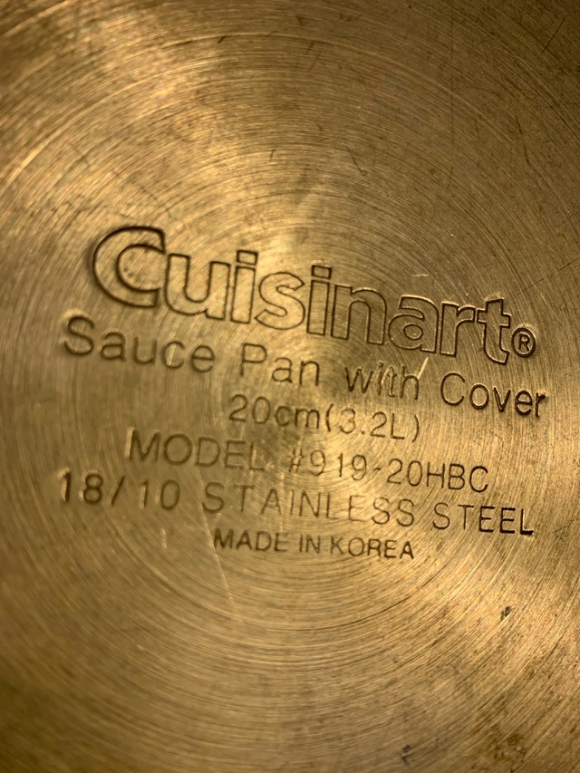 This is a used Cuisinart Sauce Pan with Cover, 20cm (3.2L). Made in Korea of 18/10 Stainless Steel. It is in good condition. PU : Winston Churchill Blvd & Burnhamthorpe Rd W in Mississauga