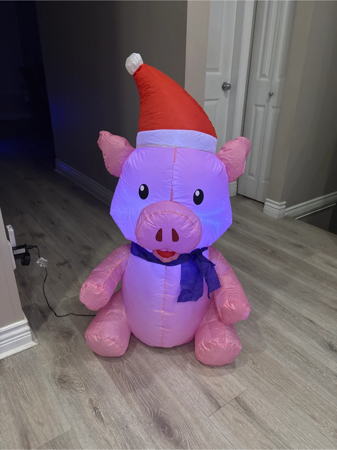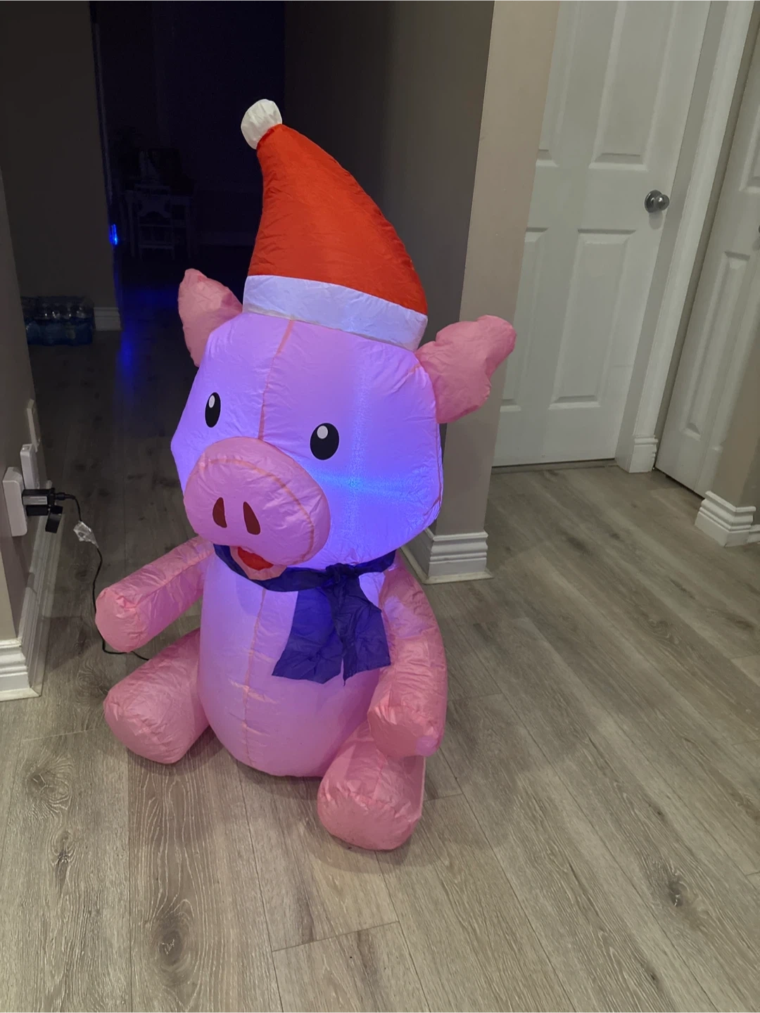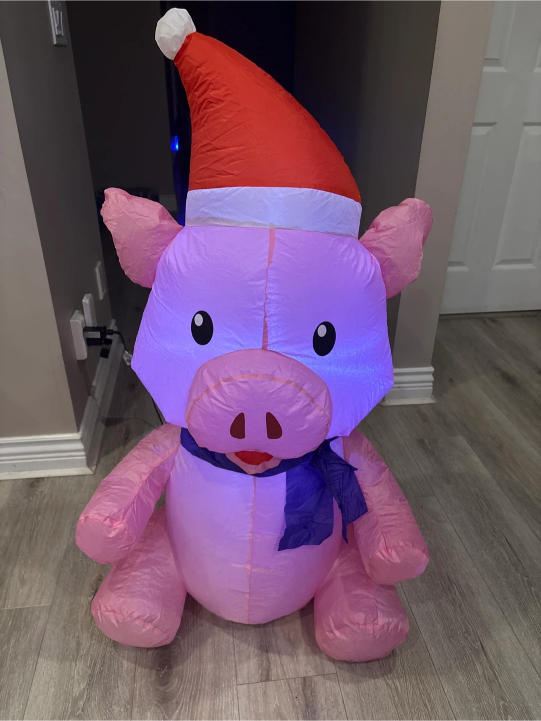 Selling a cute inflatable pig Christmas decoration! It's in great shape and ready to bring some holiday cheer to your home , 3.5 ft tall, 1.07 m self-inflated, energy efficient,led lights, for indoor and outdoors pick up walnut grove Langley