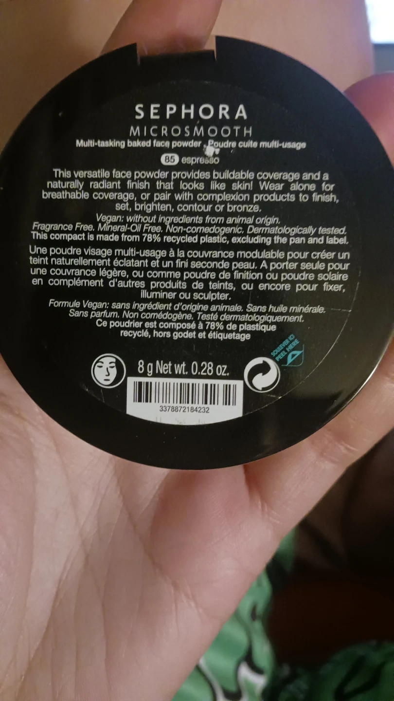 Selling a Sephora Microsmooth Multi-tasking baked face powder in the shade Espresso 85. This versatile face powder provides buildable coverage and a naturally radiant finish that looks like skin! It's vegan, fragrance-free, and mineral-oil free. The compact still has it's security seal! New in the store it sells for $30.