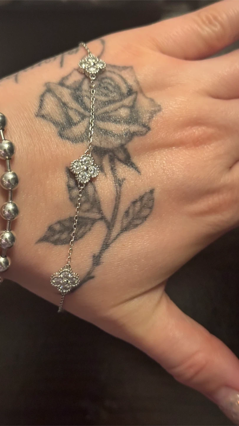 This is a Van Cleef & Arpels Alhambra bracelet in what appears to be a silver tone. It features the iconic clover design. It's in great condition and ready to wear!