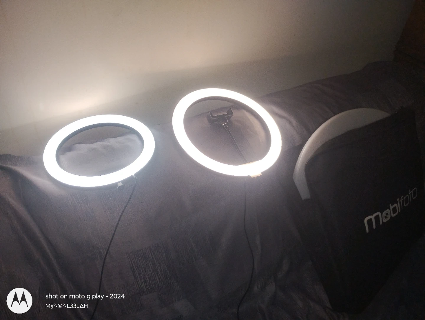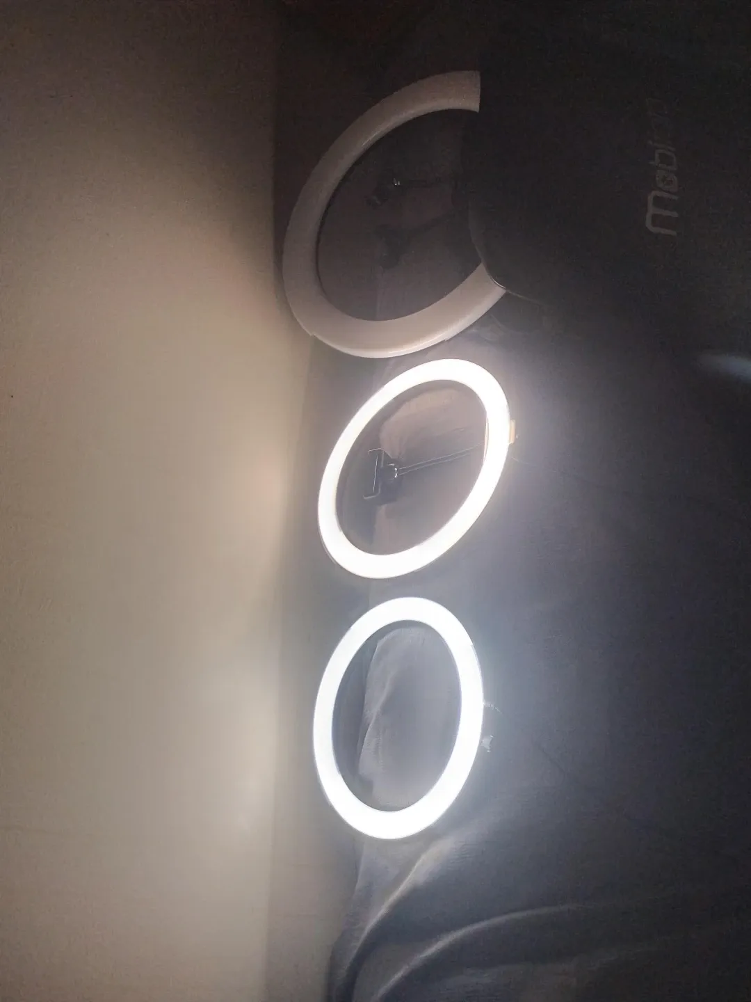 Selling 3 Mobifoto selfie ring light, about 10 inches in diameter. It comes with its original carrying bag for easy storage and transport. Perfect for video calls or adding some extra light to your photos! You can buy a 10 inch and a 12 inch and a 17 inch light. Ring plus a stylish carry case.