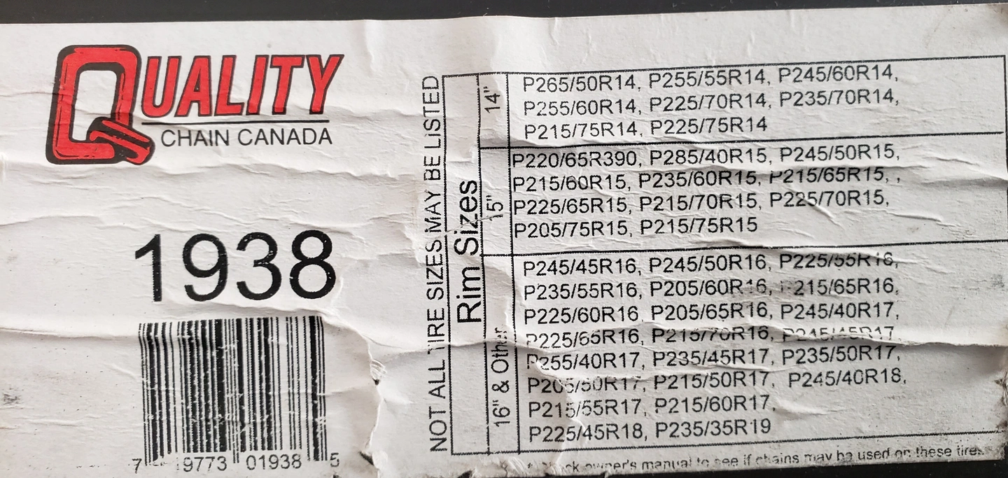 BNWOT. Bought them for my Chev Cruze, tire size 215/60 R16 but never needed to use. Brand new, still in box, NO rust.