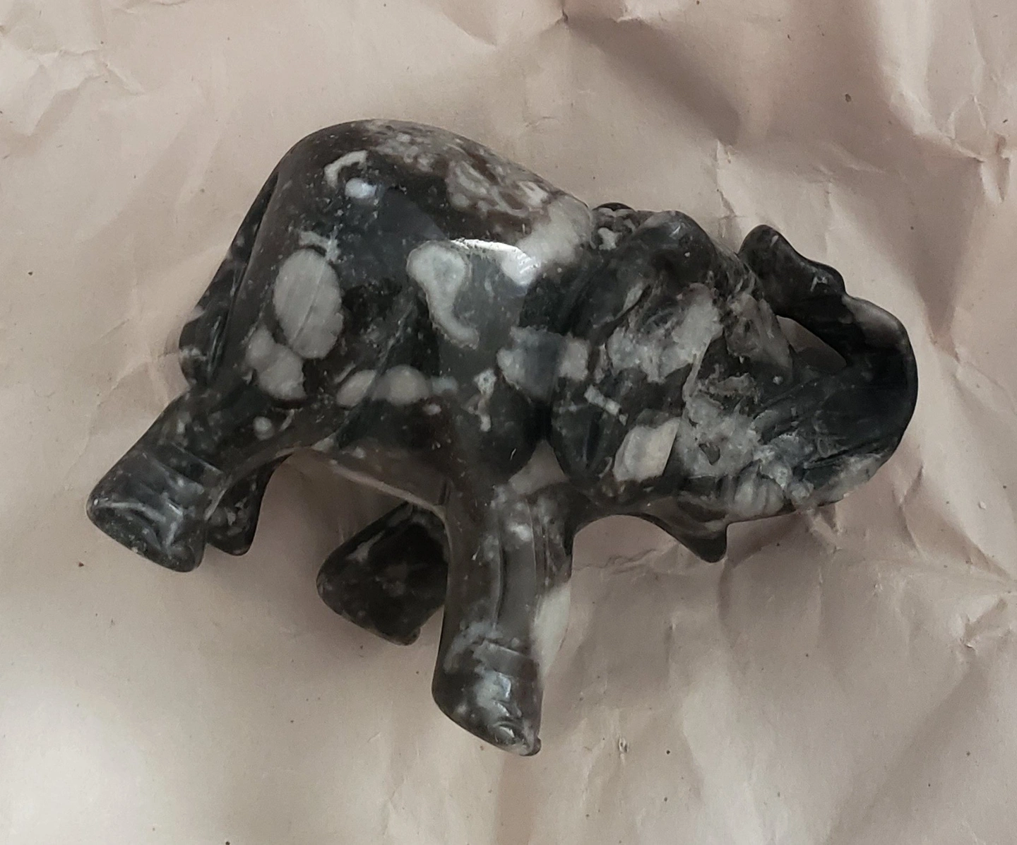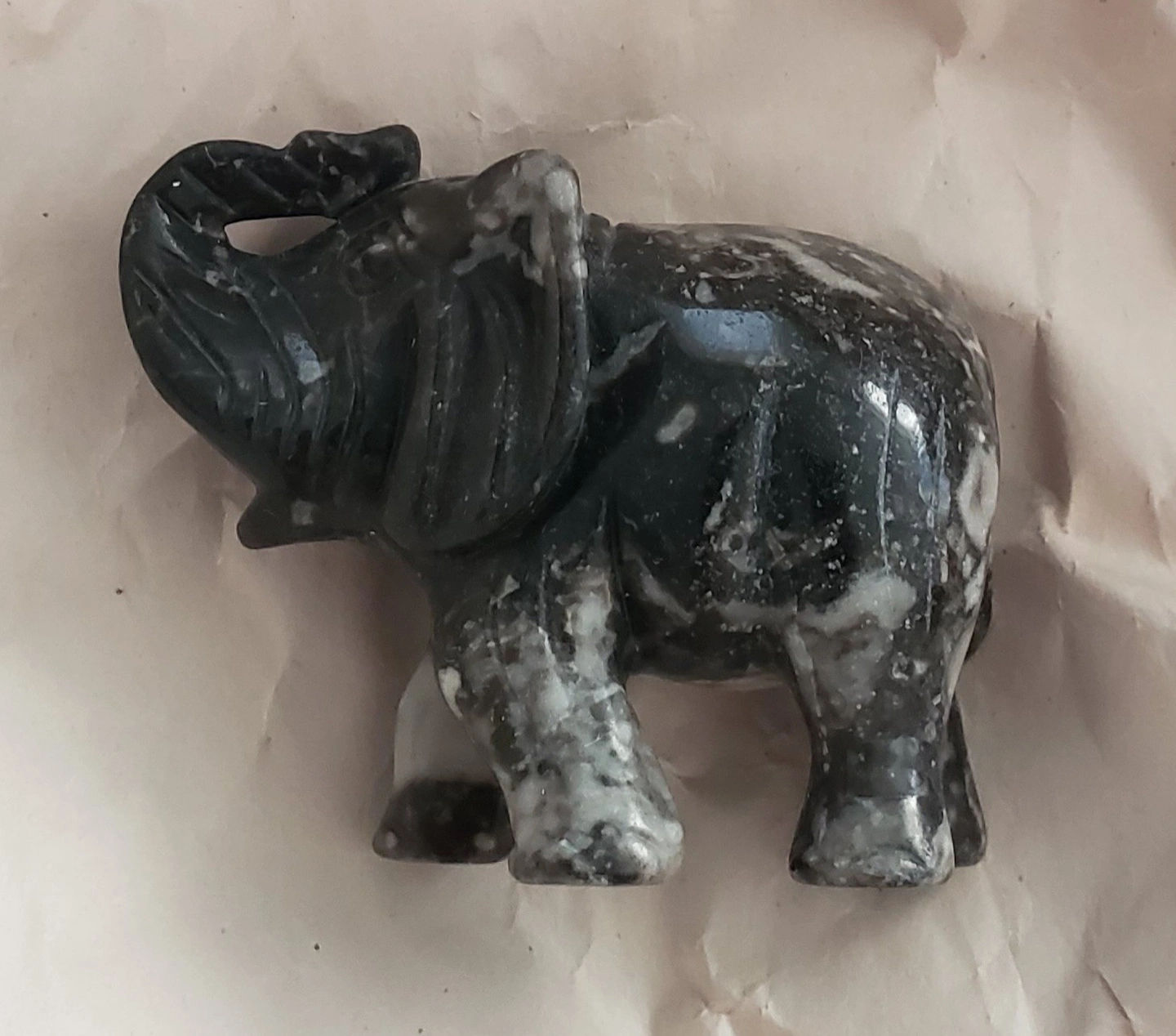 BNIB. Solid Black Stone Carved Elephant, 2.5" L x 2" H x 1.5" W. Getting rid of elephant collection. Please ask for pictures of other elephant figures I have.