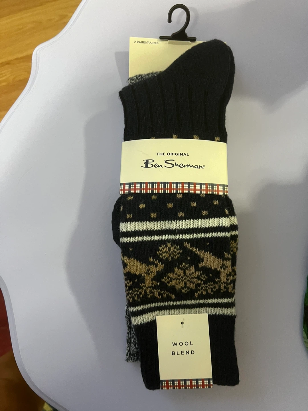 Here's a pack of two pairs of Ben Sherman socks! They're a wool blend, perfect for keeping your feet warm and cozy. The socks feature a stylish pattern. Great for everyday wear!