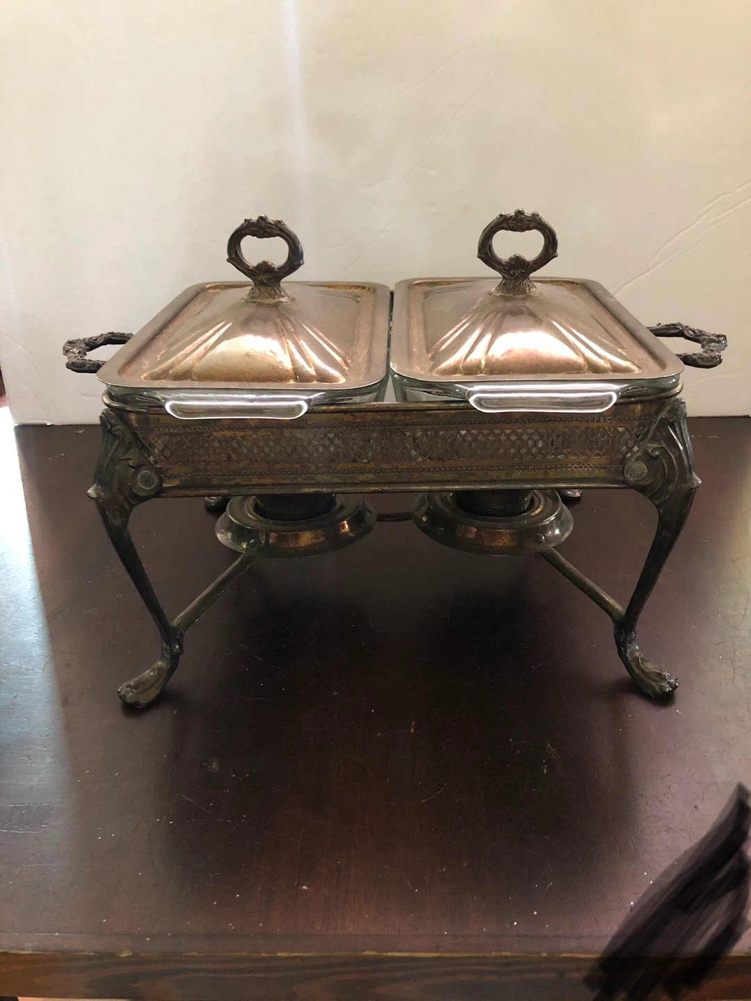 Vintage Silver Double Buffet Serving Set.