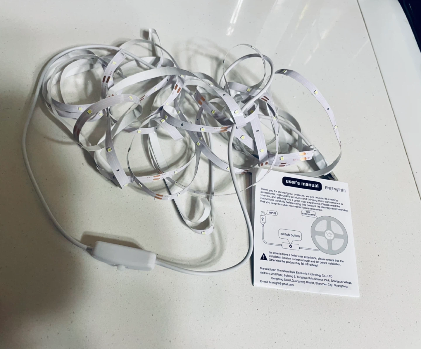 On/off switch. New 16’ BJ-LED Self adhesive Strip Light.