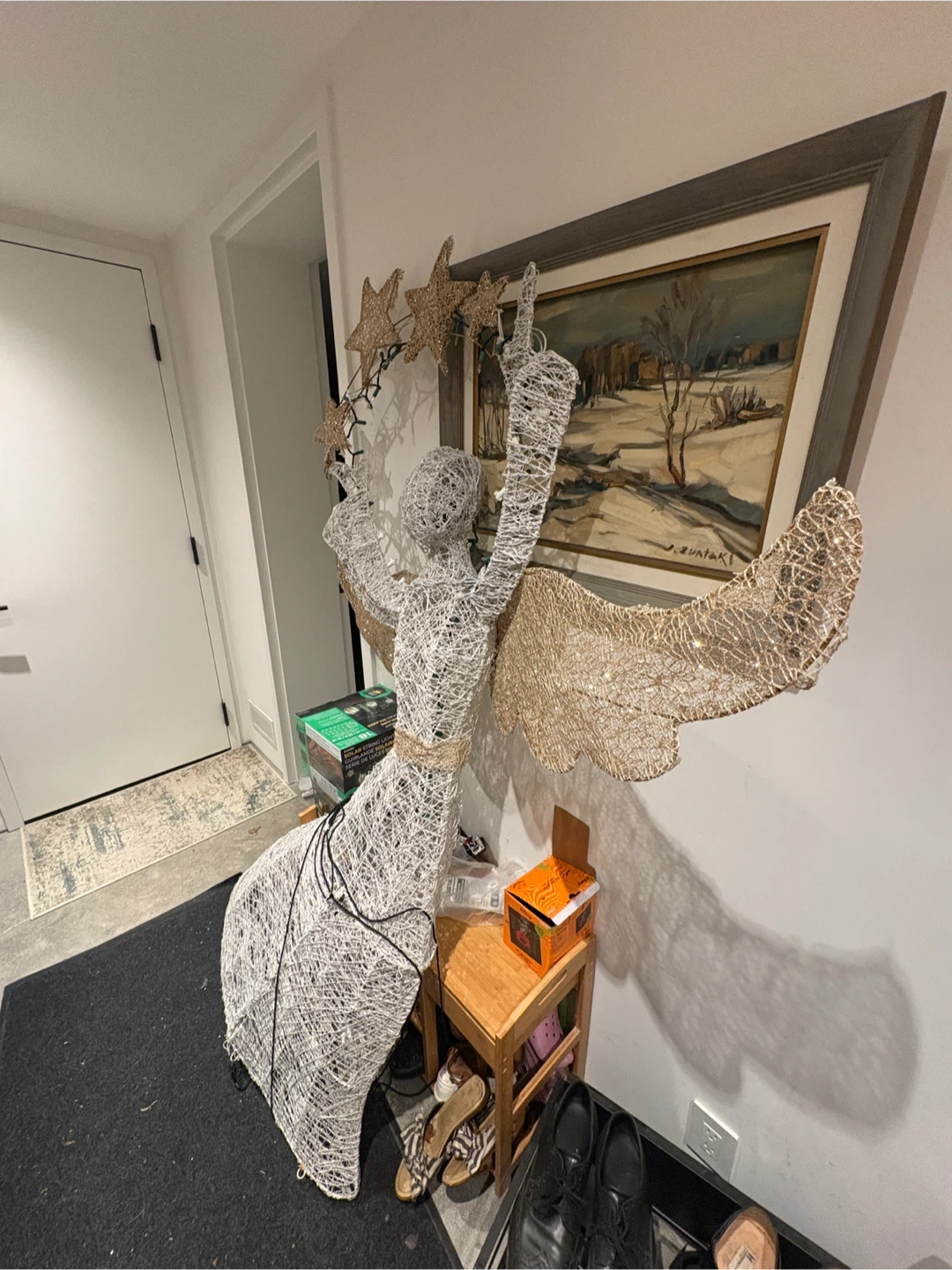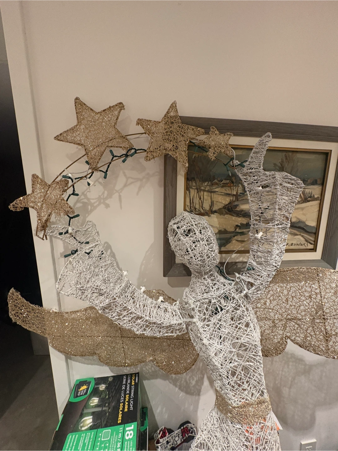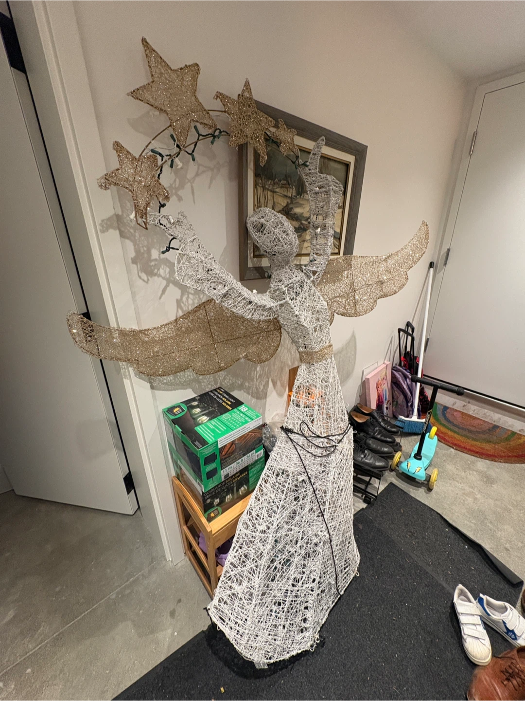 Beautiful angel Christmas decoration. Quite tall, about 5ft8. Some lights need to be replaced. The structure is very sturdy.