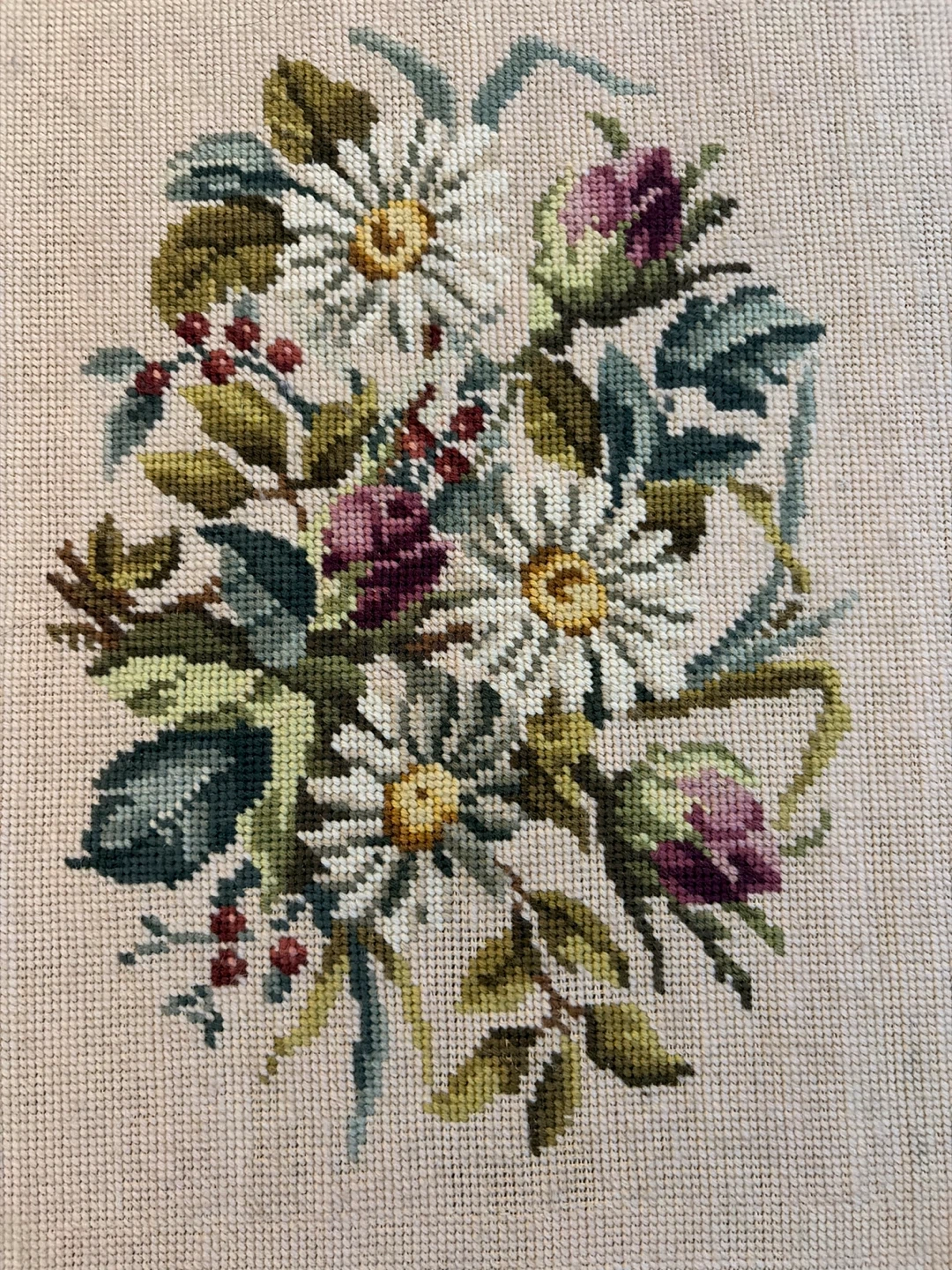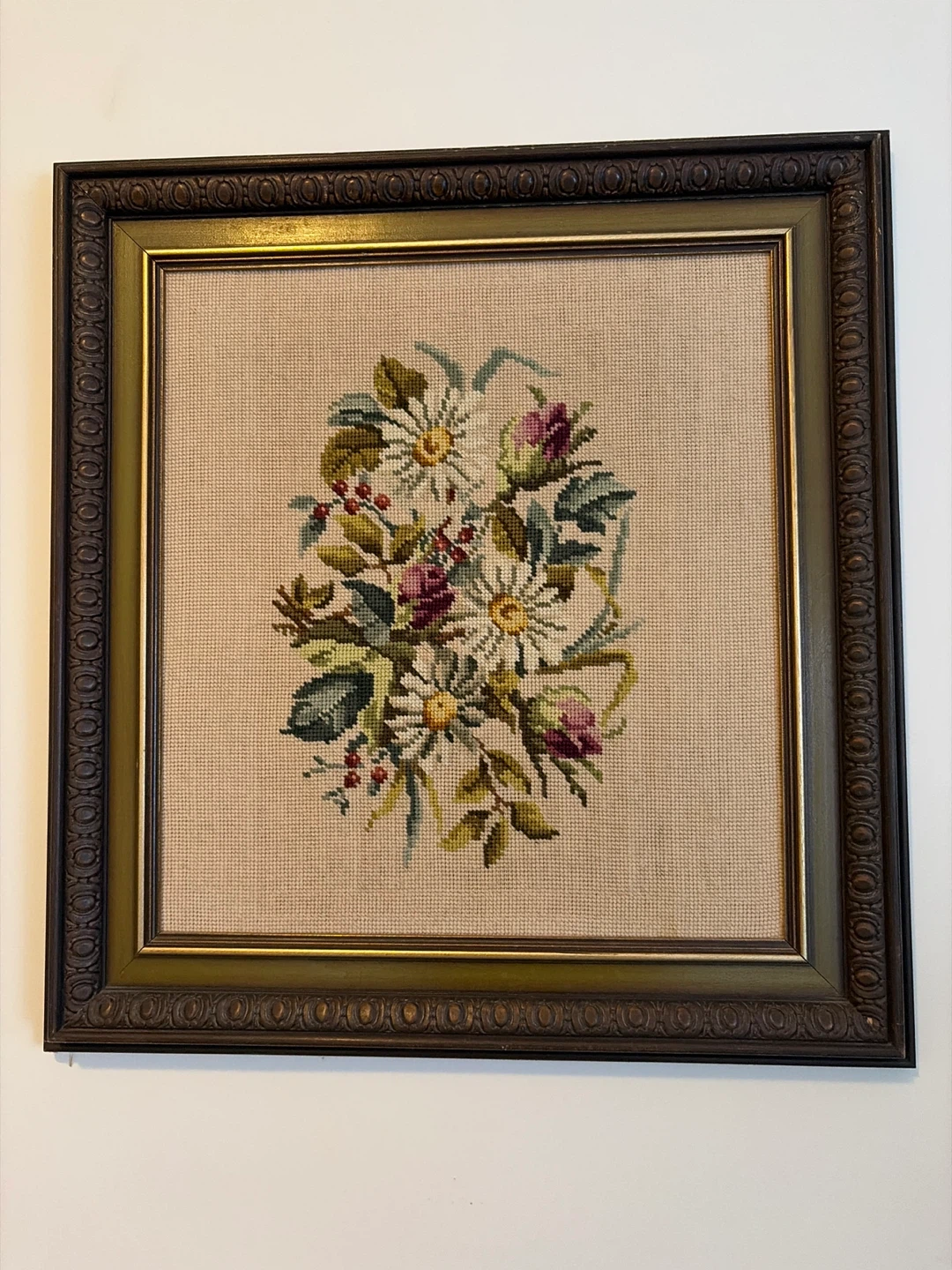 Vintage Framed Needlepoint Floral Art
