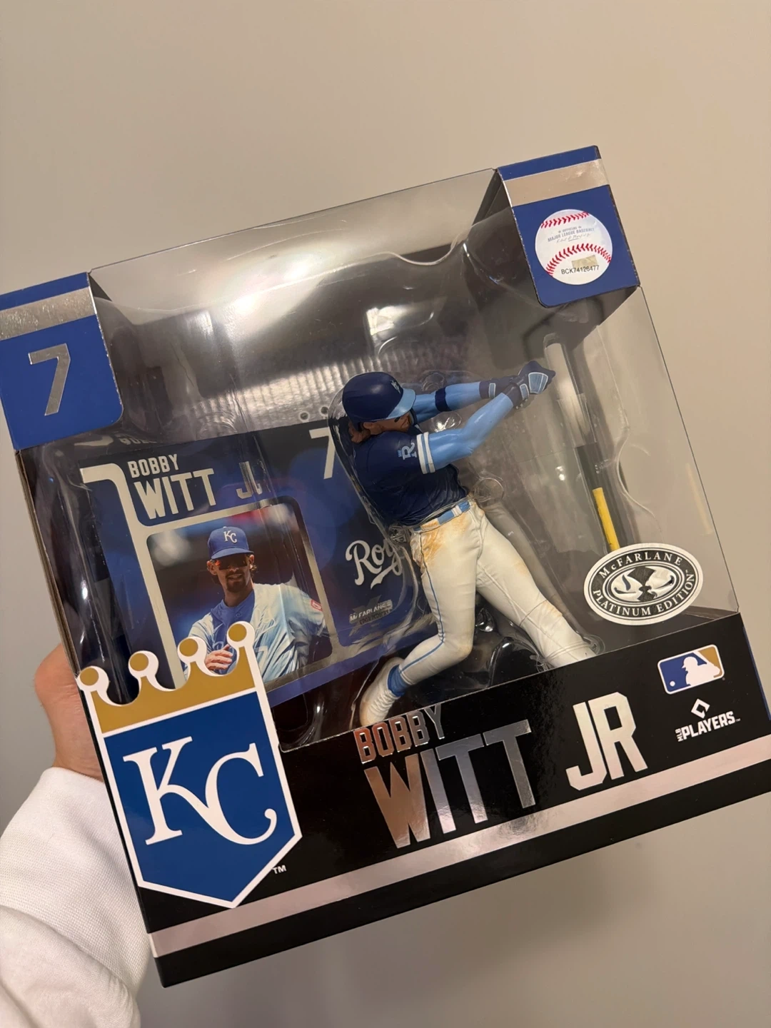 Selling a Bobby Witt Jr. figurine, still in its original packaging! It's a McFarlane Platinum Edition figurine of the Kansas City Royals player. A great collectible for any baseball fan!