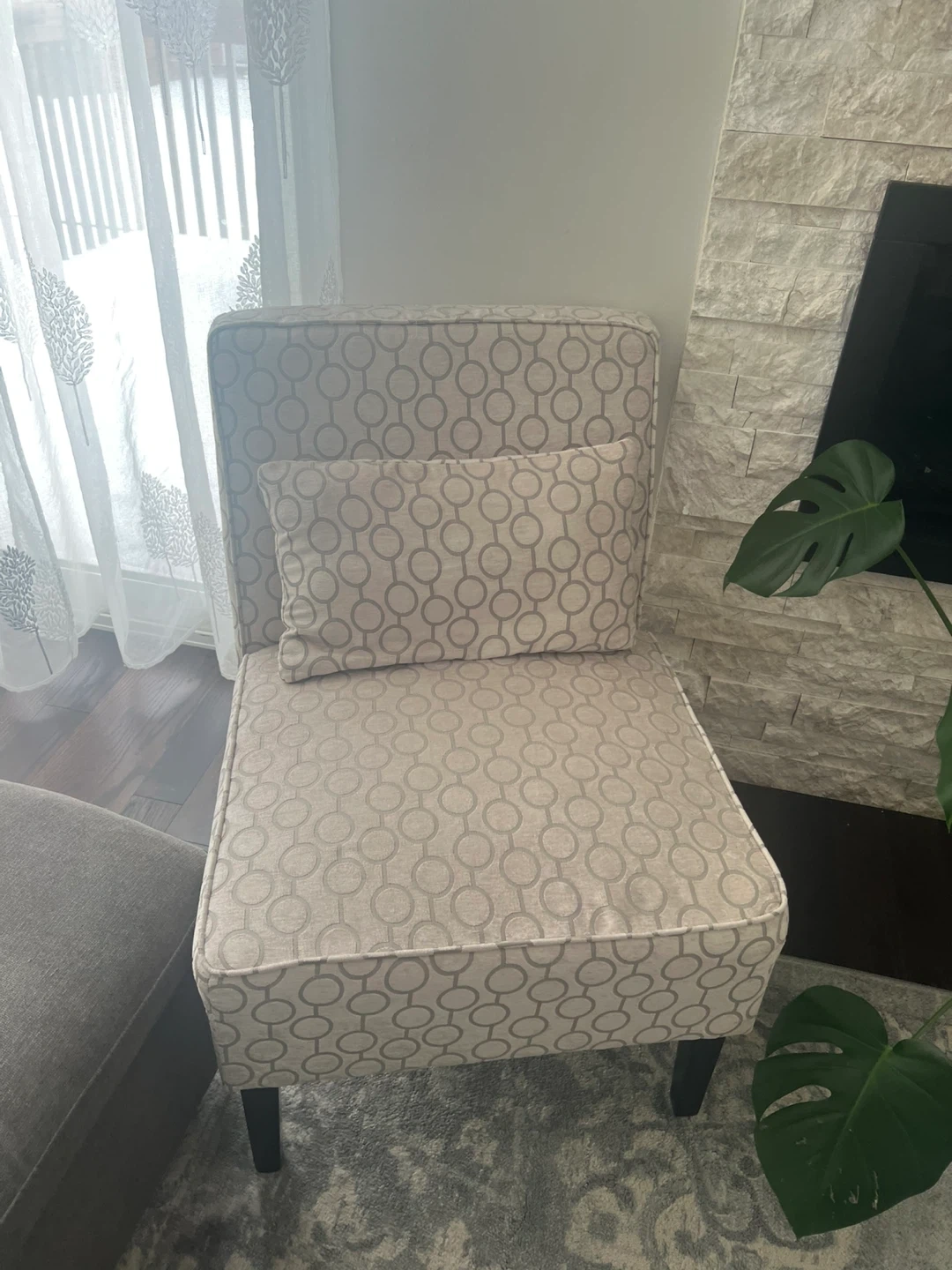Selling a cute accent chair with a patterned design! It's in great condition and would look lovely in any living room or bedroom