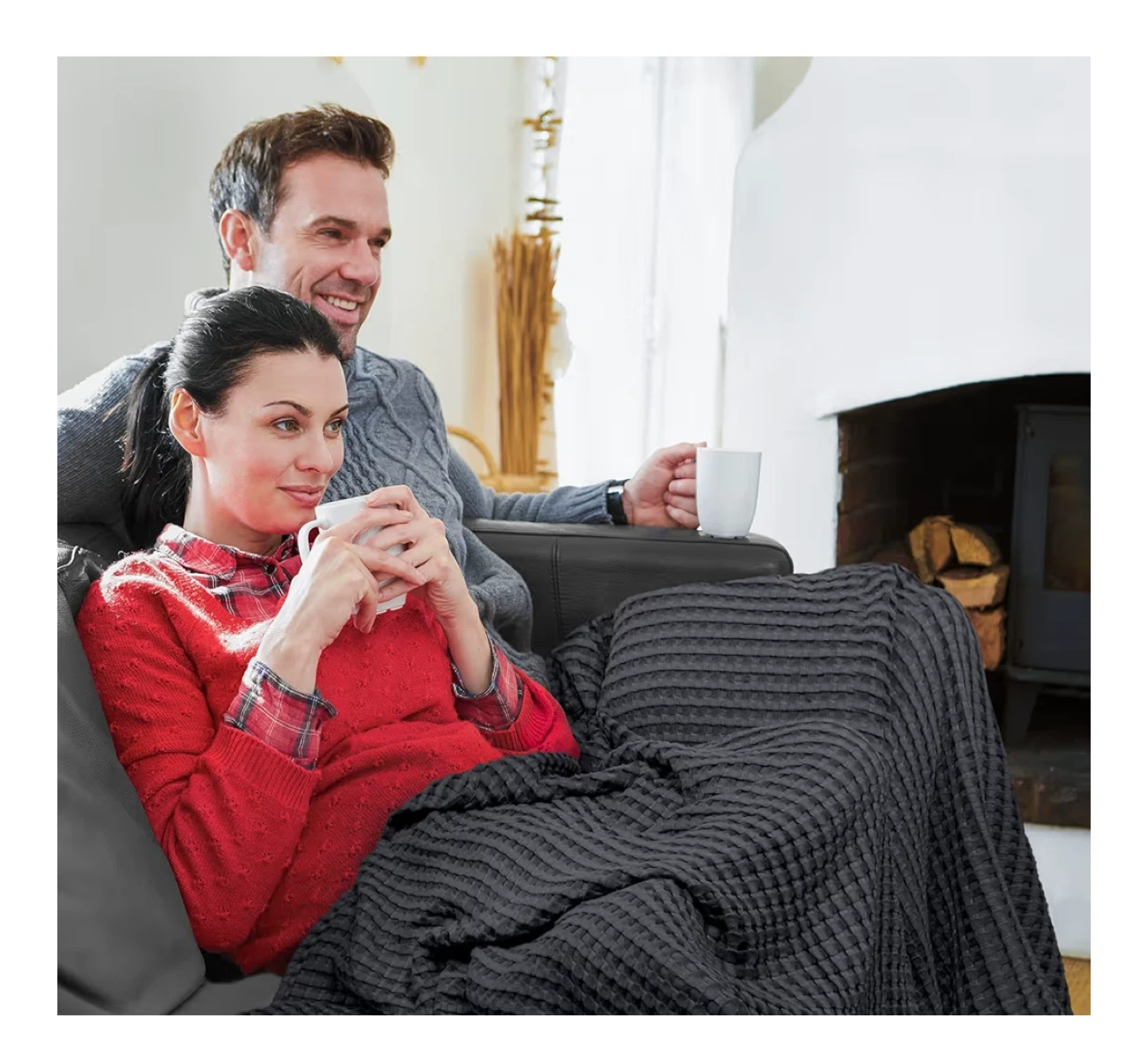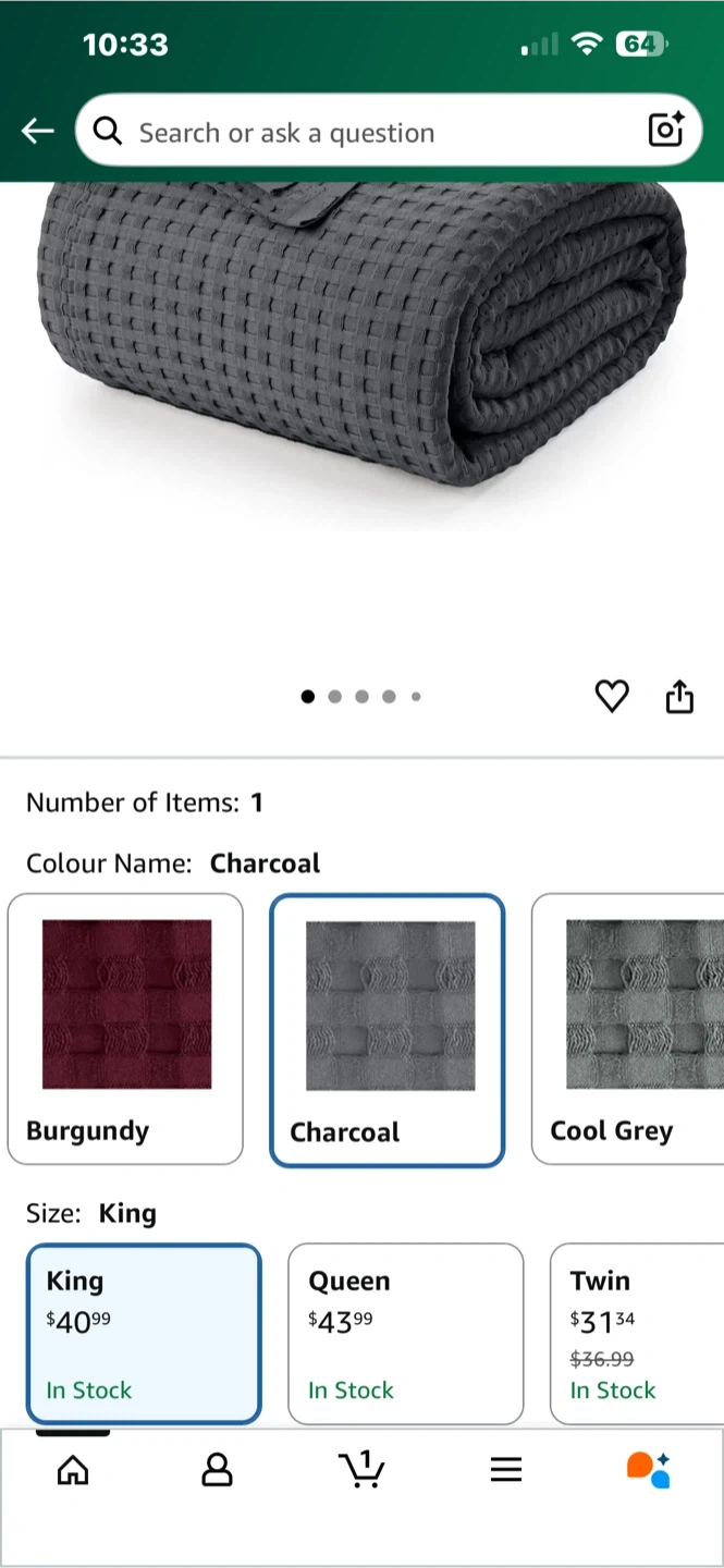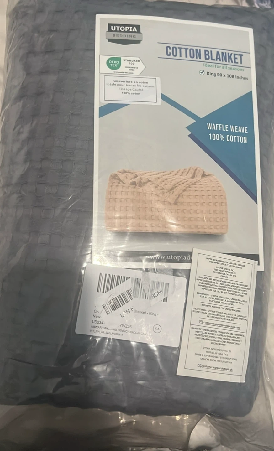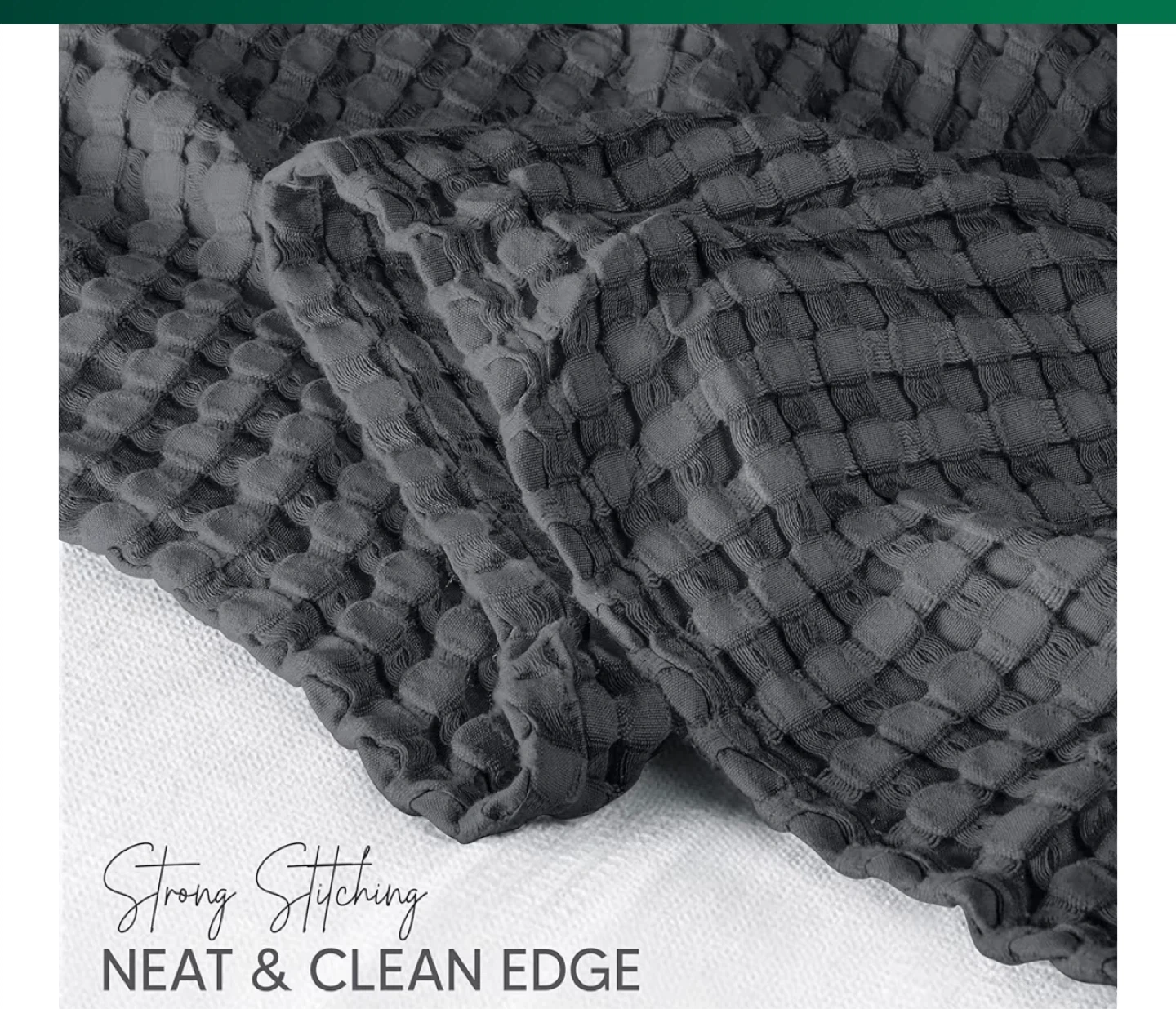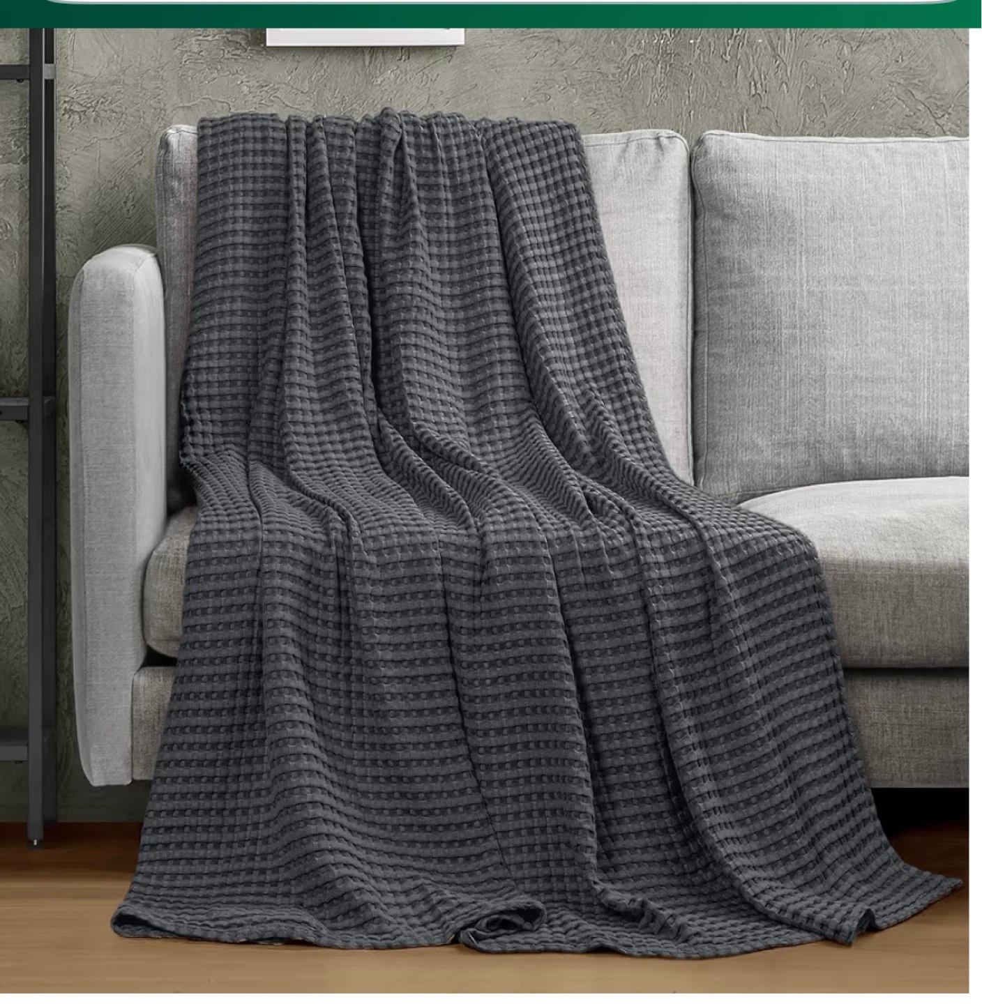 Snuggle up with this cozy king-size blanket! It features a stylish waffle weave pattern and a neat, clean edge with strong stitching. The grey colour will easily match any decor.