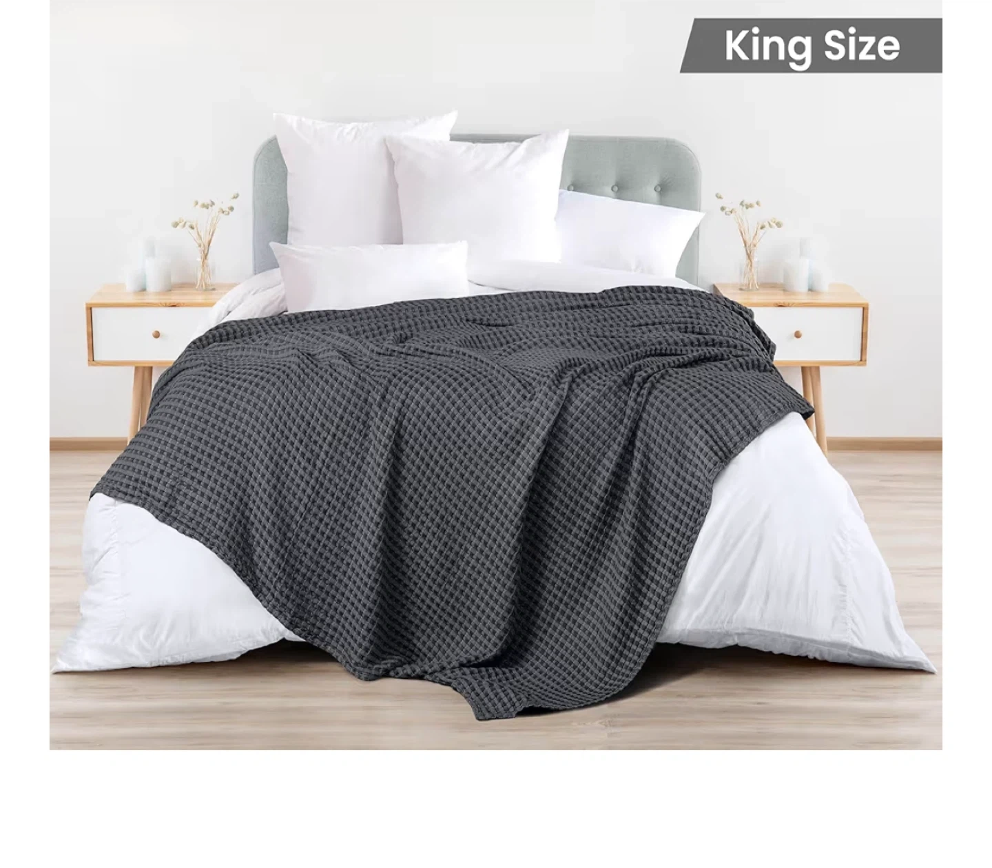 King Size Grey Waffle Weave Blanket