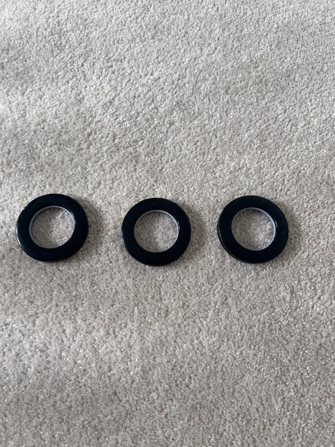 Selling a set of black curtain rings. They are brand new. I bought a set of 100 and have 30 remaining unused ones.