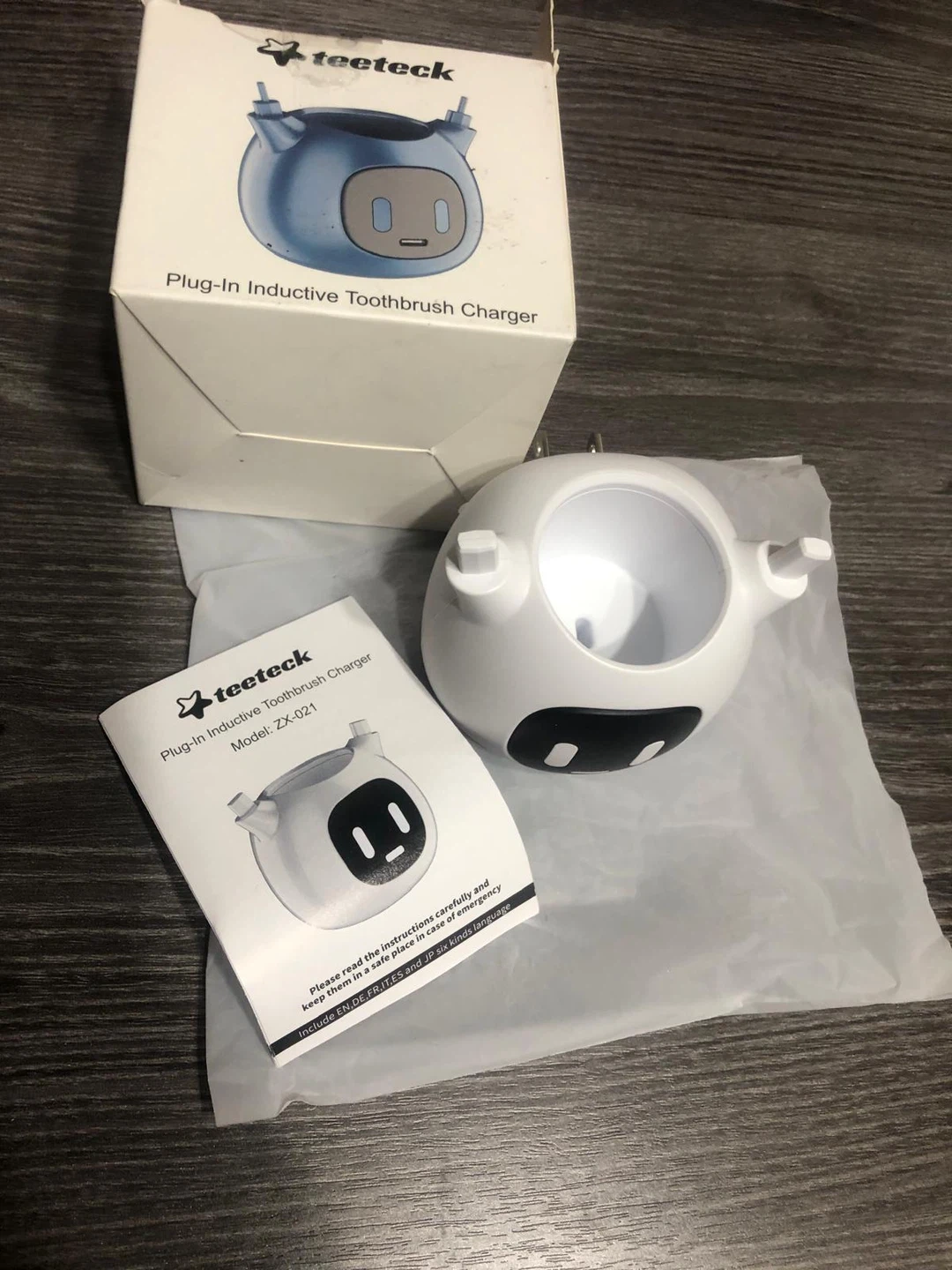 Selling a brand new Teeteck Plug-In Inductive Toothbrush Charger, It's a cute and lightweight design, compact enough to take anywhere! The box is included. Great for keeping your electric toothbrush charged and ready to go!