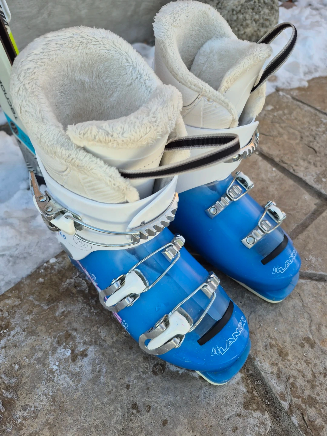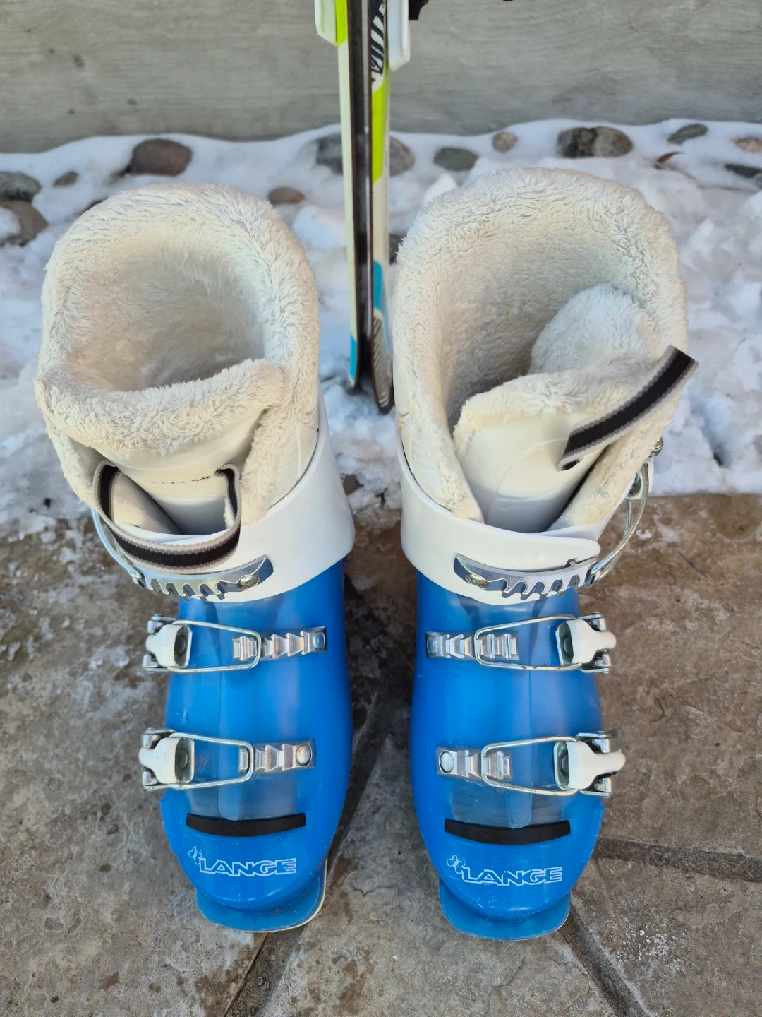 Selling a great pair of Lange Starlet ski boots in size 21.5. Like *NEW*. They are blue and white and look to be in good condition. Very comfortable and warm. Easy to put on. Made in Europe. Perfect for hitting the slopes! Perfect for girls and boys. Save and pick them up today.
