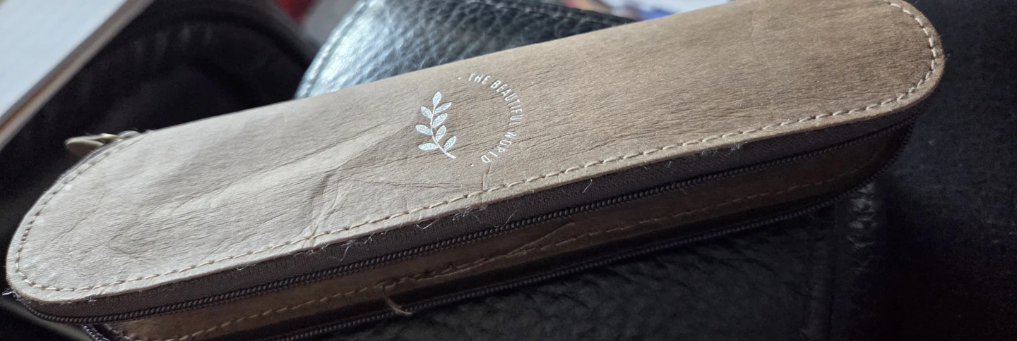 FREE This is a wooden cutlery set from The Beautiful World. It includes a spoon, and chopsticks. The set comes in a matching case for easy storage and transport. NEW NEVER USED.