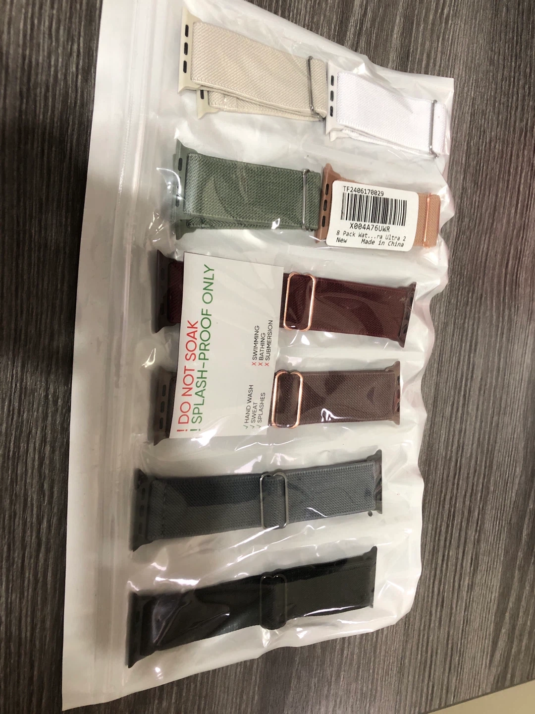 Selling a new 8-pack of Apple Watch Ultra 2 bands! These bands are splash-proof only, so they're perfect for hand washing or splashes, but not for swimming, bathing, or submersion!