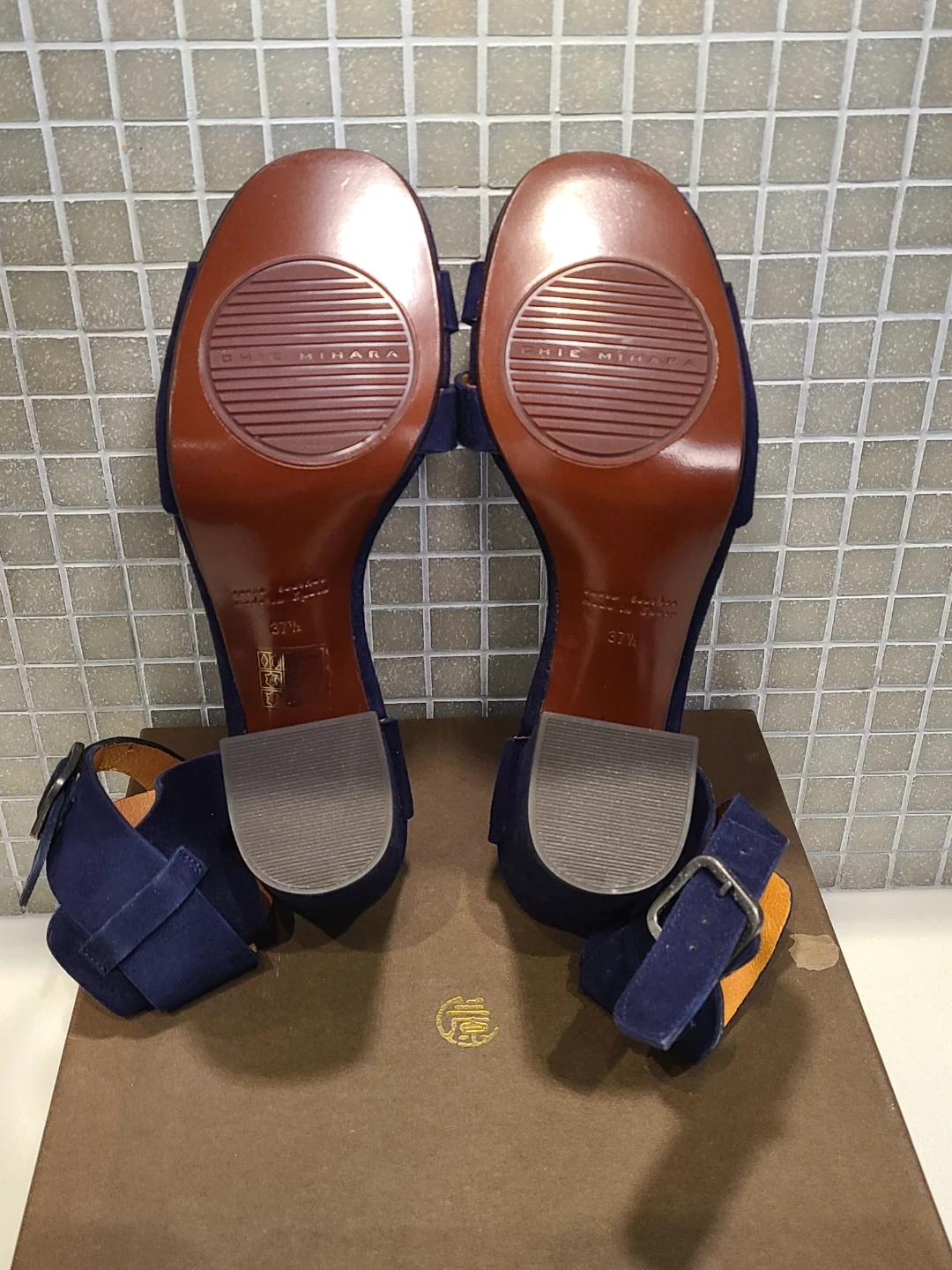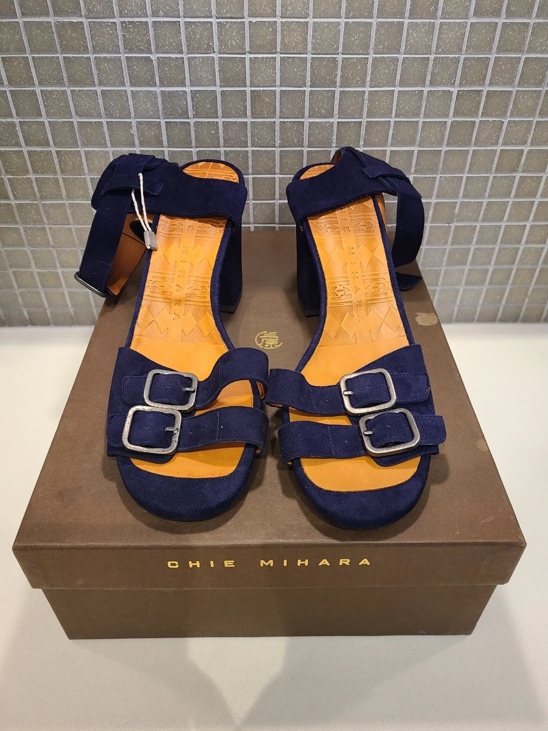 Chie Mihara Lorena ! Blue Suede Sandals Size 37.5