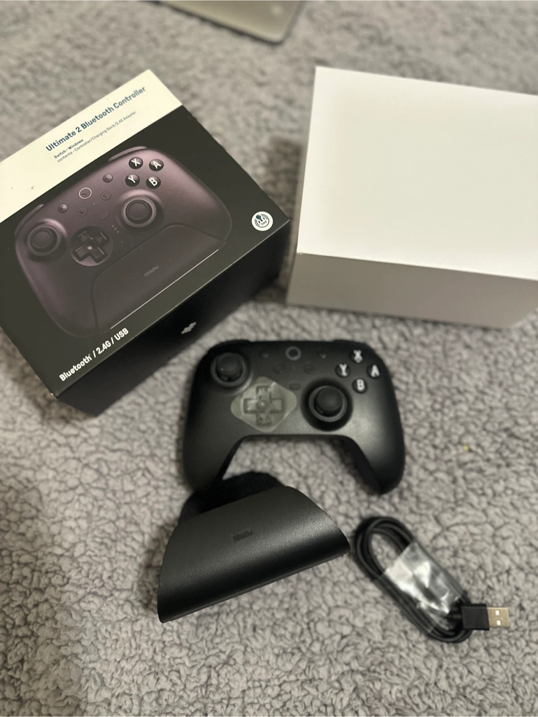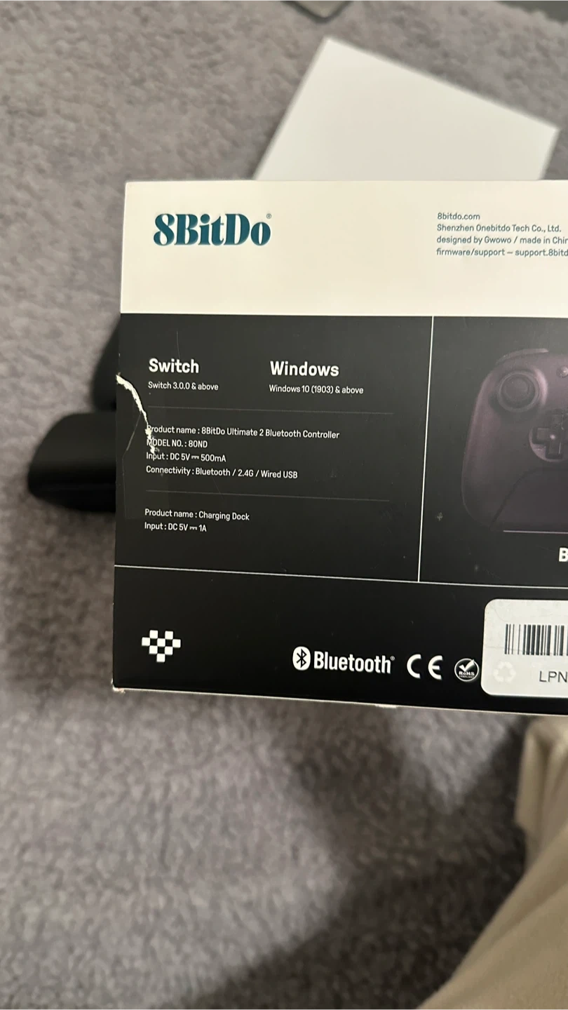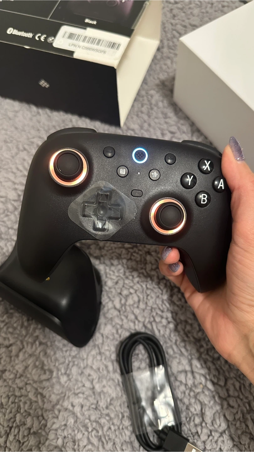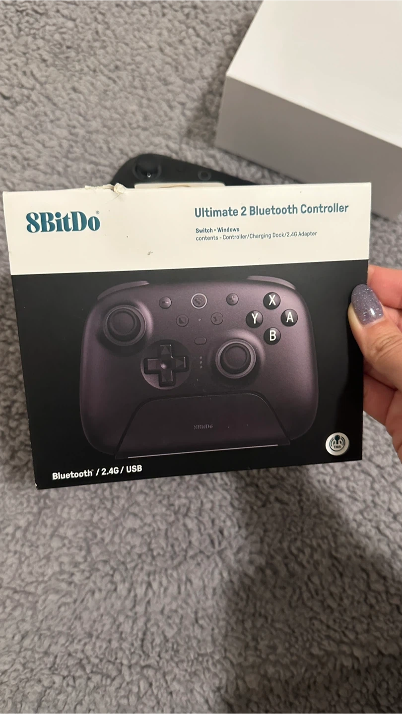Selling an 8BitDo Ultimate 2 Bluetooth Controller in black! It's compatible with Switch and Windows. Comes with the box, charging dock, and USB cable