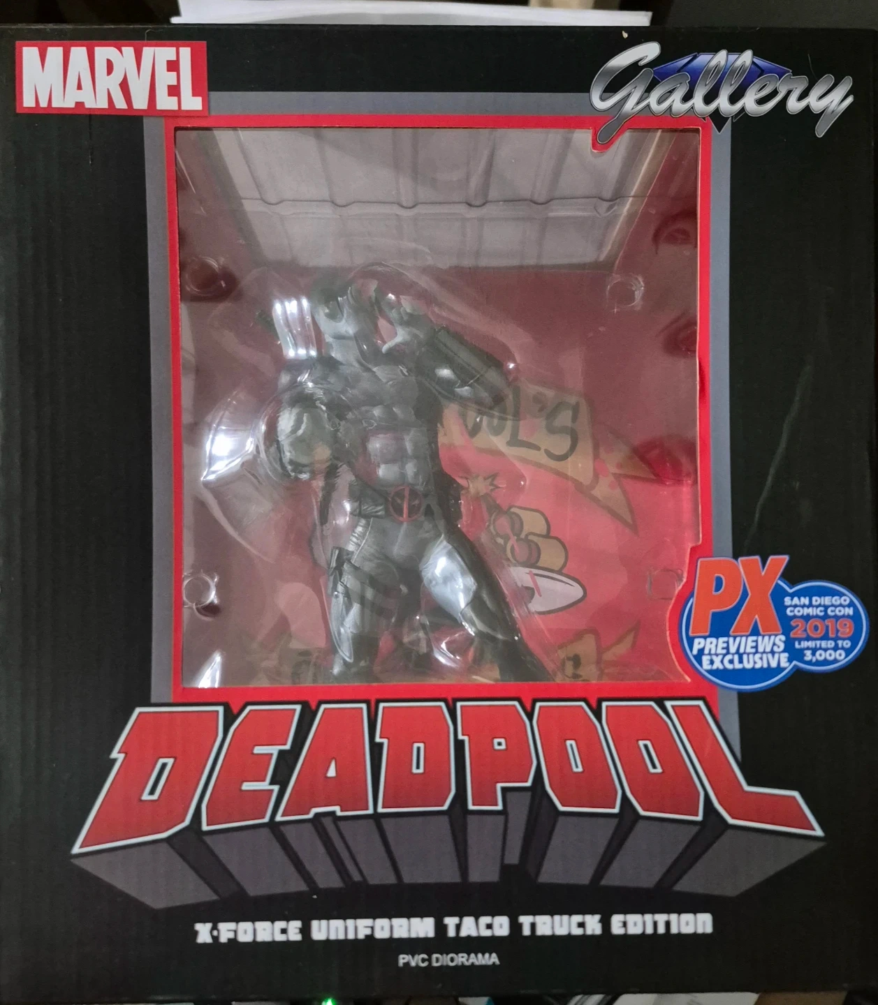 Buy & SellMarvel Gallery Deadpool X-Force Taco Truck EditionMarvel Gallery Deadpool X-Force Taco Truck Edition$85Selling a San Diego Comic-Con 2019 Marvel Gallery: X-Force Deadpool Taco Truck PVC. It's in great condition and comes in the original boxConditionLike newWHERE TO MEETcastledownsView MapSELLERverifiedDianaLorelei650 reviews0 chats·0 favorites·10 viewsSEND CHAT TO SELLERHi Diana! I’m interested in your listing.Hi Diana! I’m interested in your listing.Get the Karrot app to chatSign In to chat