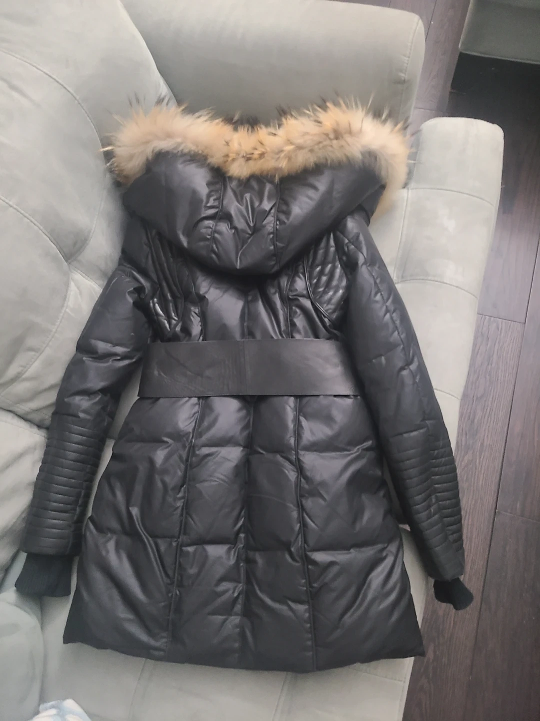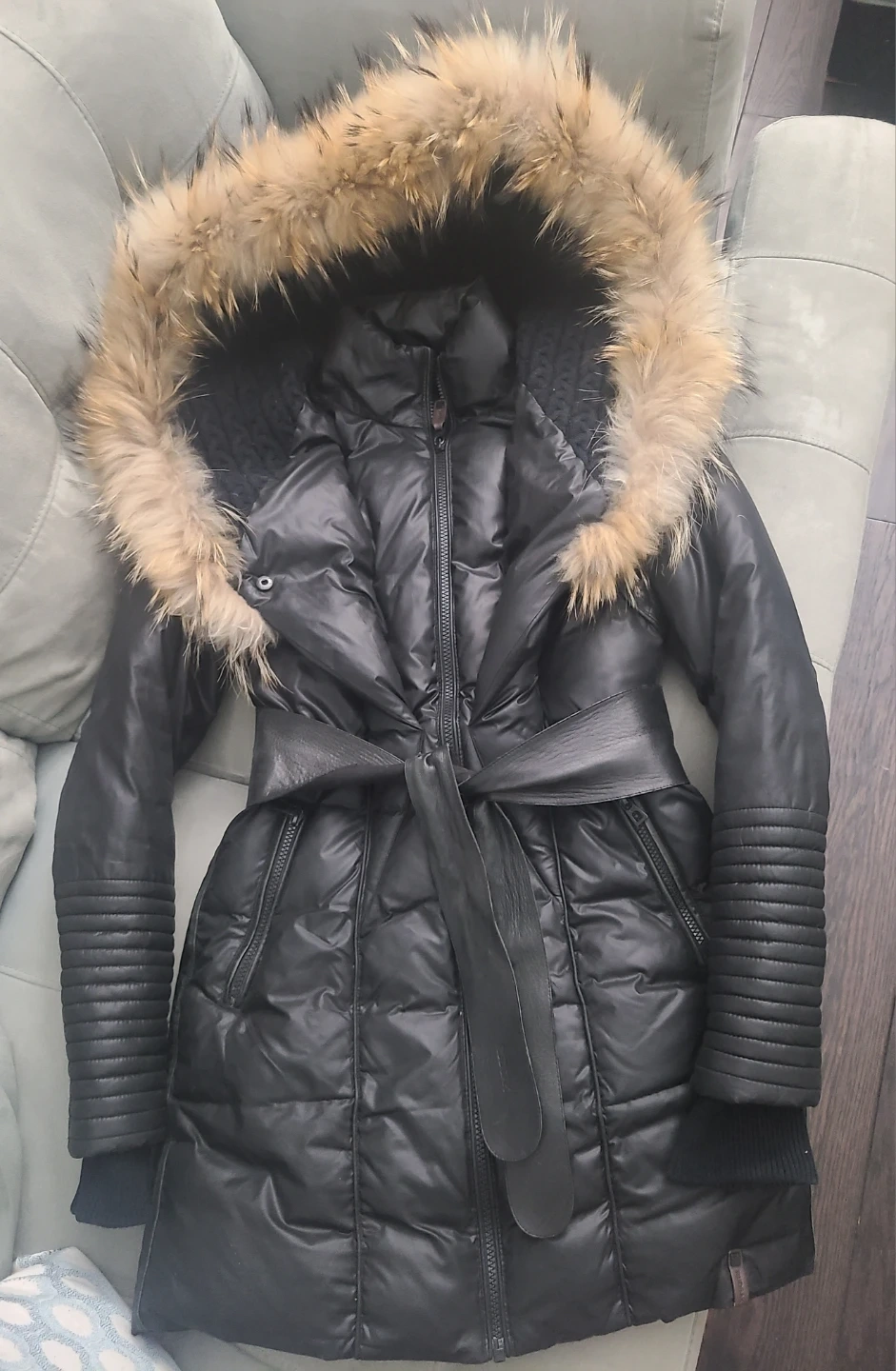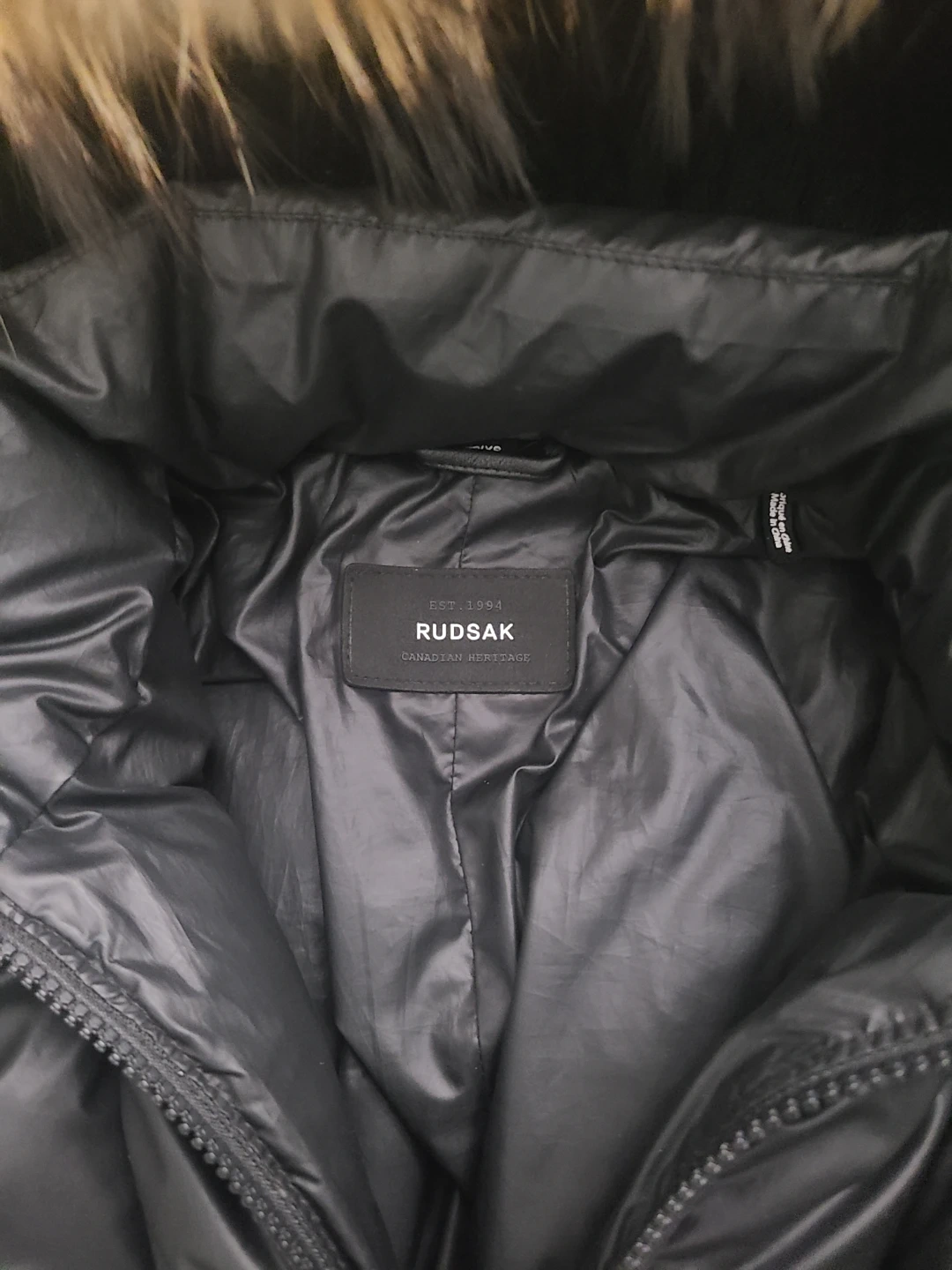 Selling my gorgeous Rudsak black down parka in XS. It features a luxurious fur-trimmed hood and a belted waist. Great for keeping warm during the winter months! Retails for $900, priced to go asking for $190.