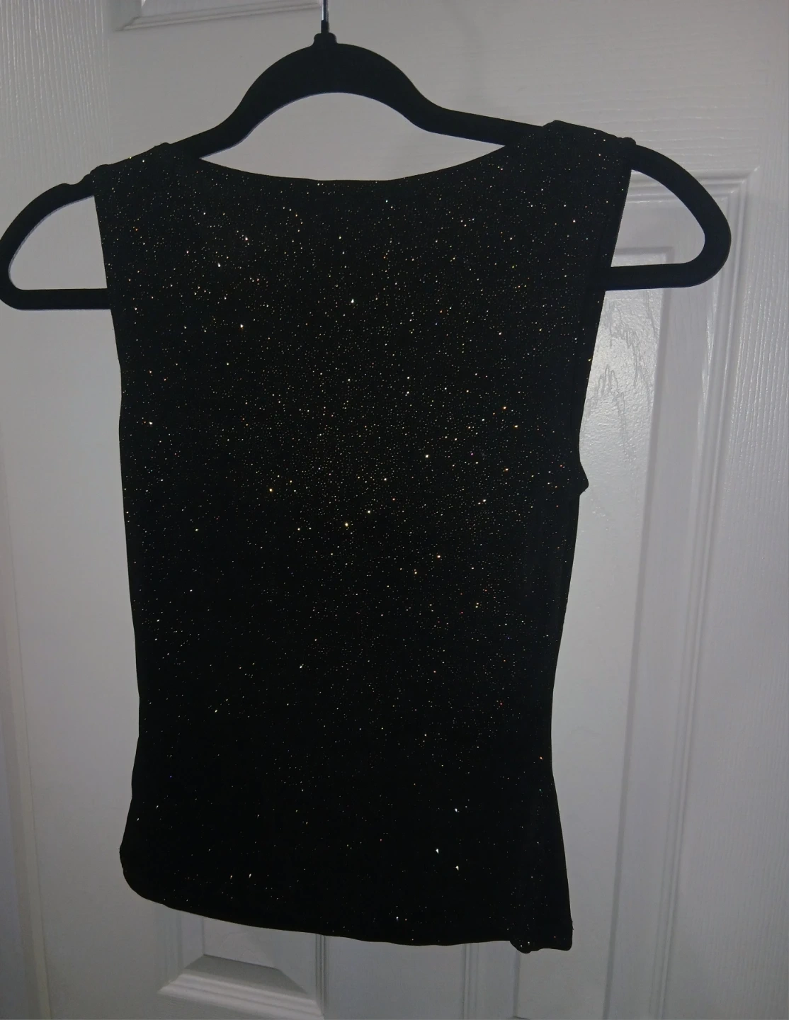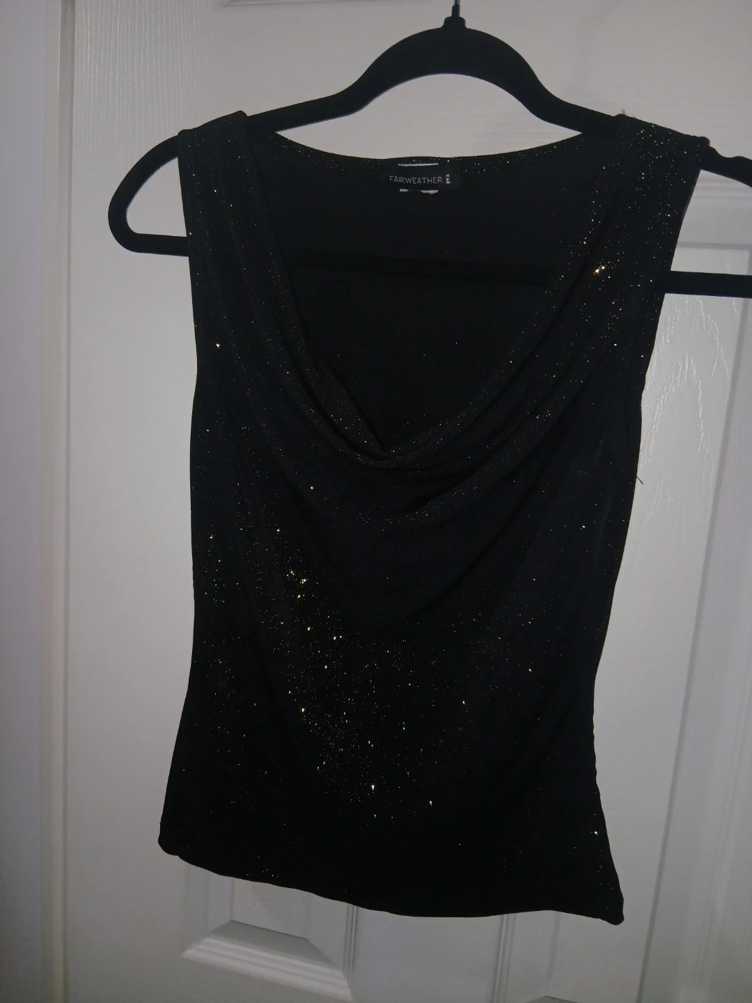#gifting a Fairweather sleeveless top in black with gold sparkles! It has a cowl neck and would be great for a night out or a party!