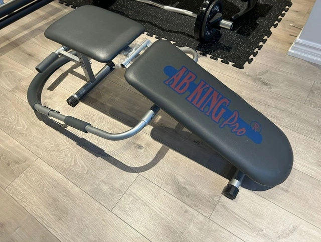 AB King Pro - exercise machine. The Ab King Pro is an at-home workout machine that focuses on your abdominal muscles. With the Ab King Pro, you’ll strengthen your core, which is the foundation of all movement. With a strong core, you can prevent low back pain, strengthen every day movements and help your posture. The Ab King Pro is a great product to help you lose weight and flatten your stomach. Get great abs the easy way for a fraction of the cost of gym membership. Are you tired of endless Gym sessions and tiring stomach workouts? Then, you need to give your abs and body the royal treatment, introducing Ab King Pro , one of the best and easiest ways to get incredible abs and a lean body. Ab king Pro targets your upper, middle and lower abs all at the same time for efficient workout. You can flatten your stomach and help reduce fat with this amazing Ab King pro in weeks. Like new condition, barely used.