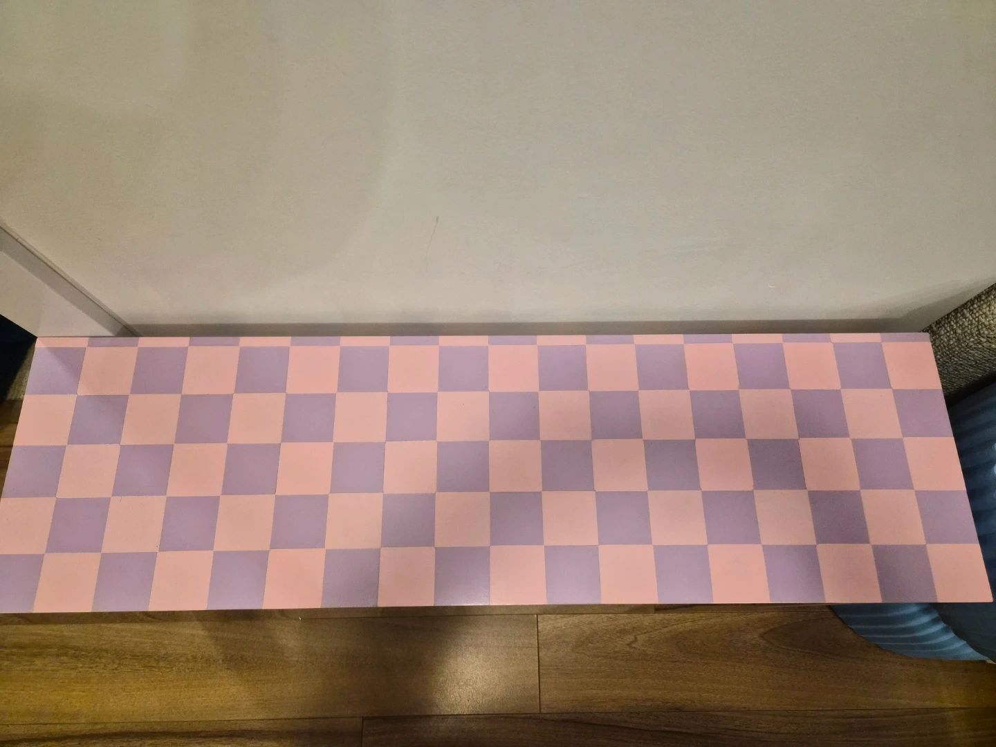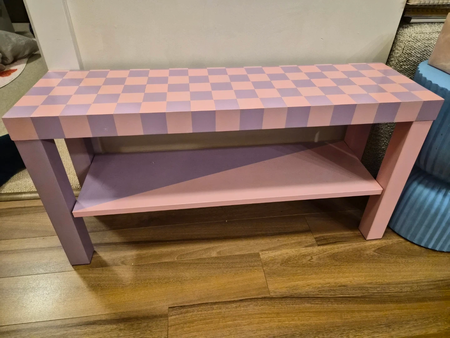 Selling a cute checkered accent table! It's in great shape and would be perfect for a bedroom or living room. The colours are a soft pink and lavender, a great addition to any space!