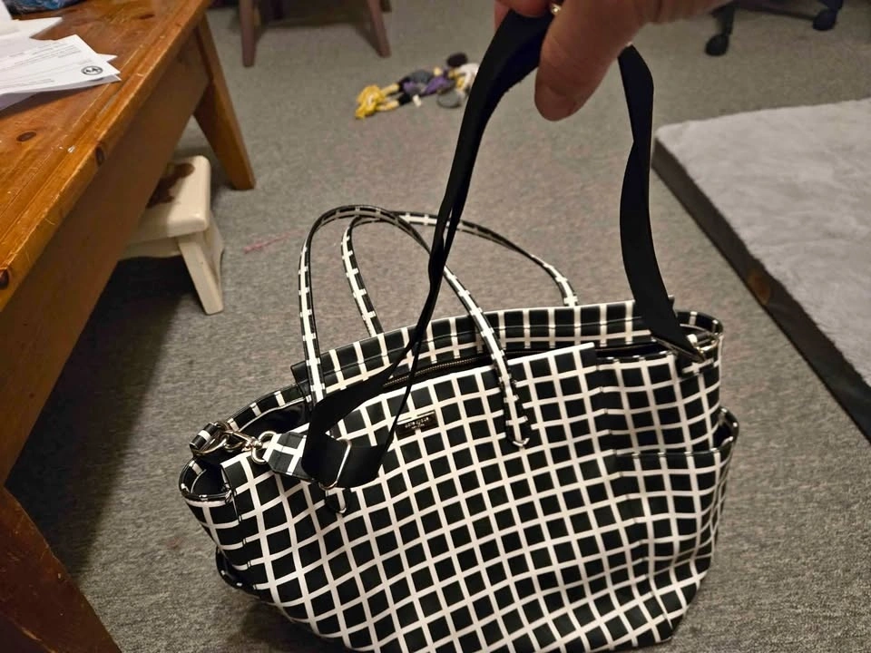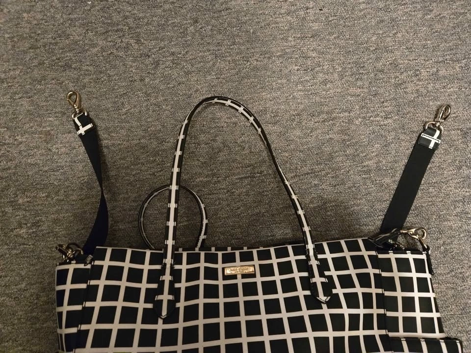 Kate Spade black and white diaper bag. Has shoulder, cross body straps and stroller straps. Only used a couple of times by me - didn't work for me.