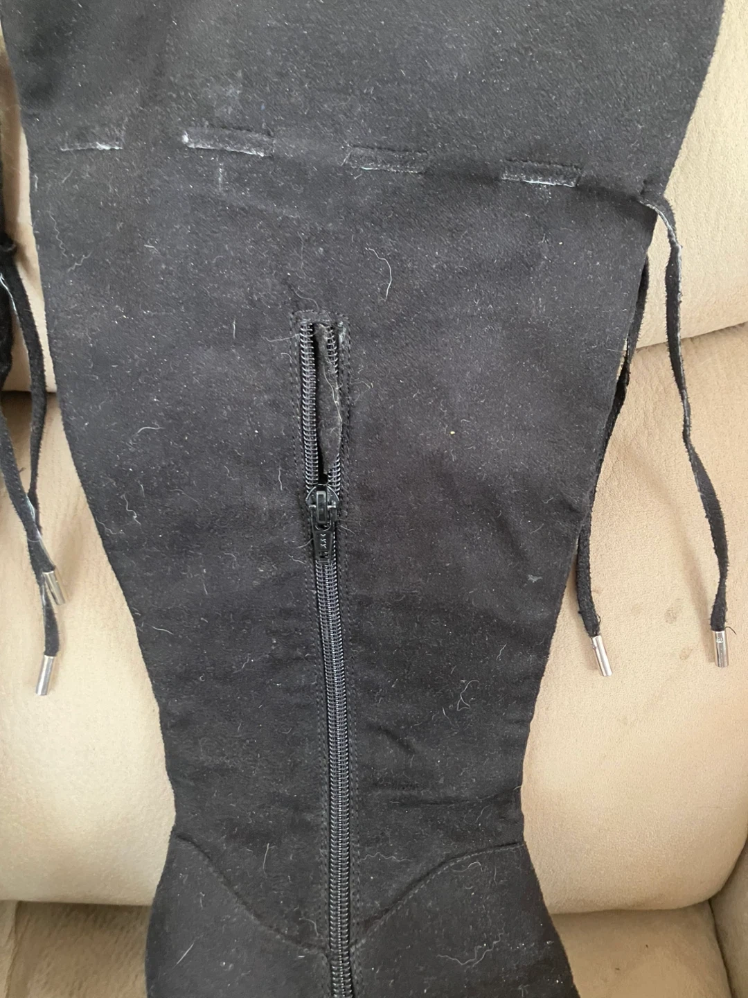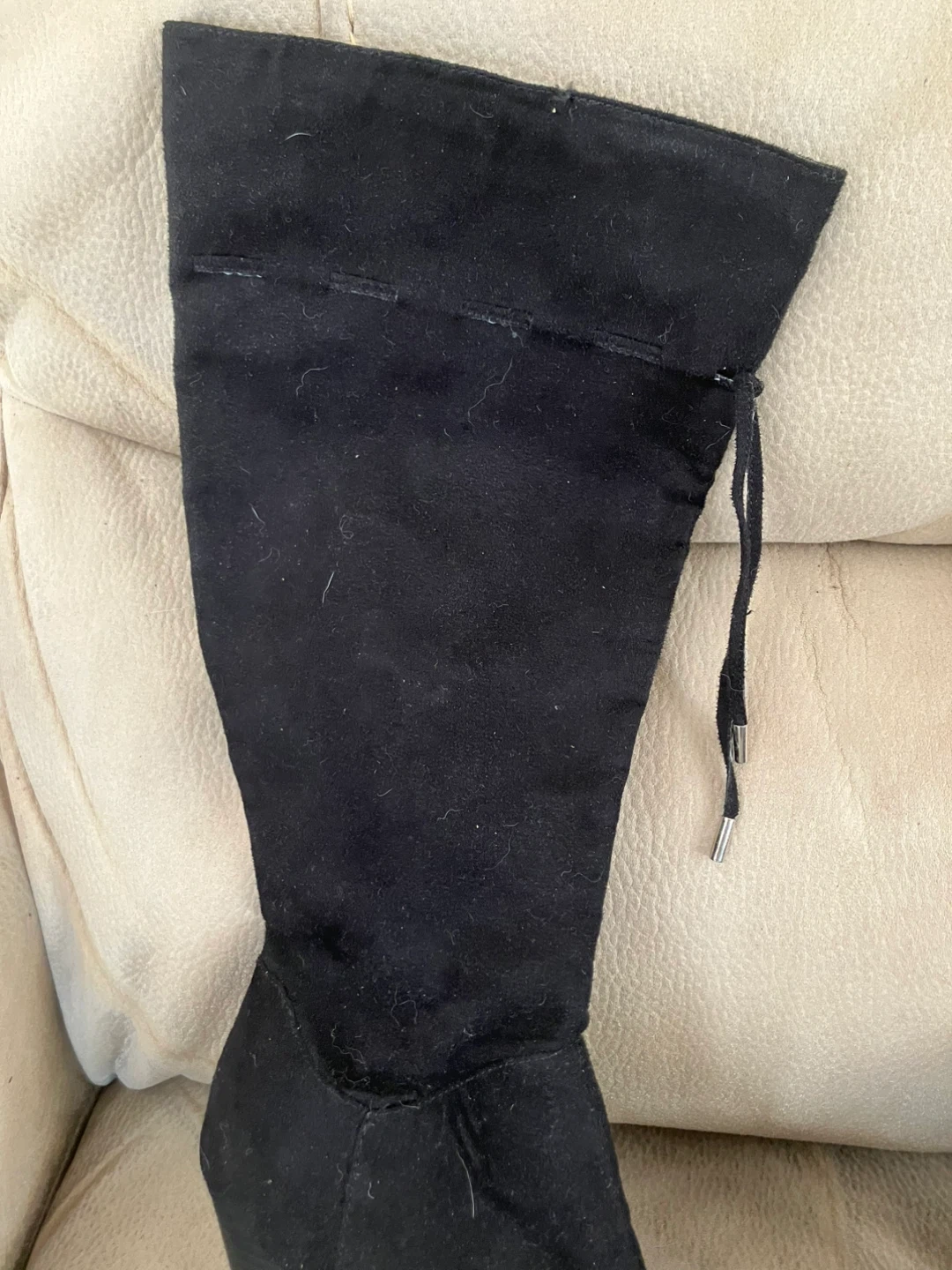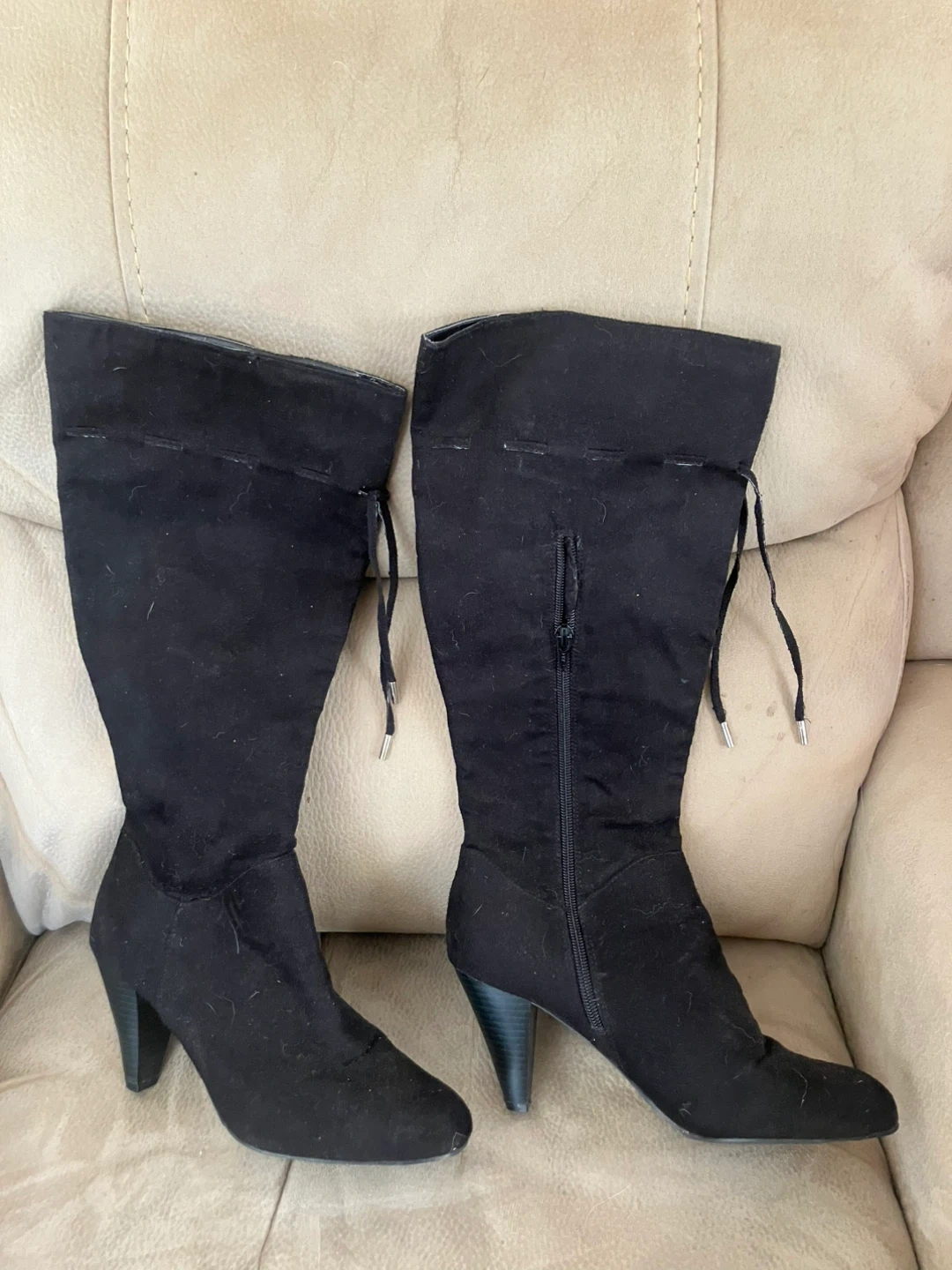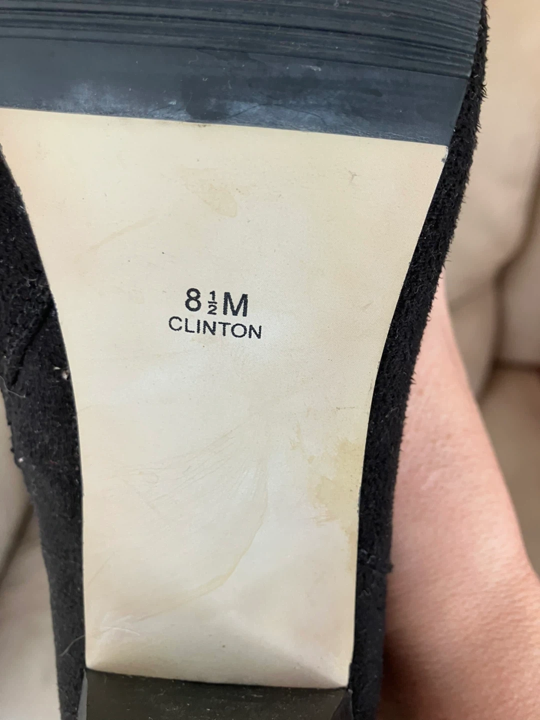 Selling a never worn pair of Clinton boots in black! These are a size 8.5M and have a zipper and tie detail at the top & approx 3” heel.
