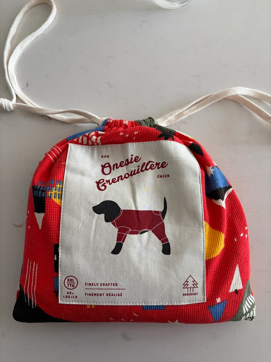 Cozy XXL Arborist dog onesie! My dog tried it on once but it doesn’t fit him, so brand new! Purchased from Drake General Store. Let me know if interested and I can provide measurements. Waffle knit soft, bum/tail opening.