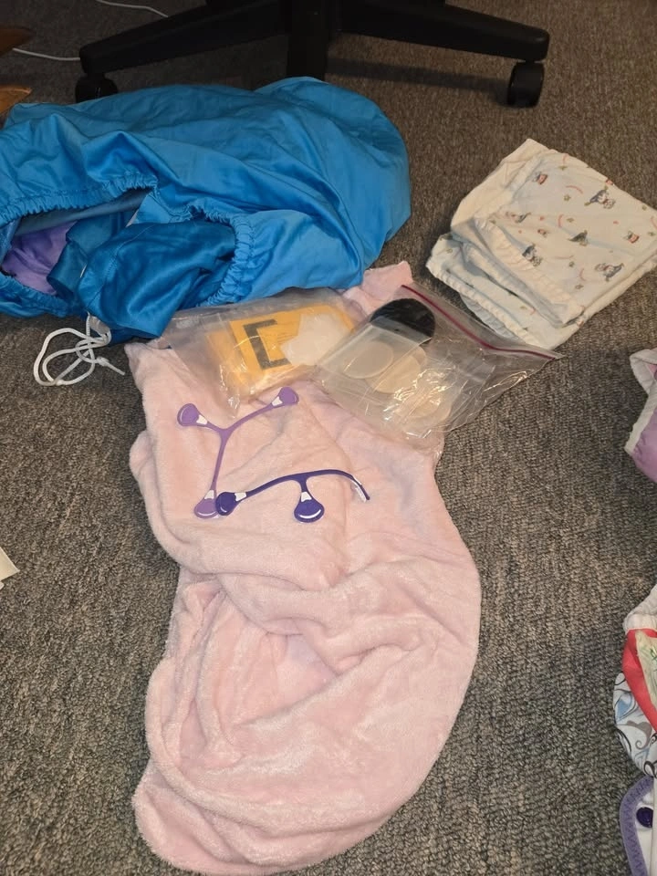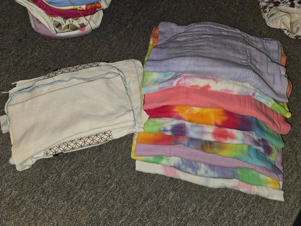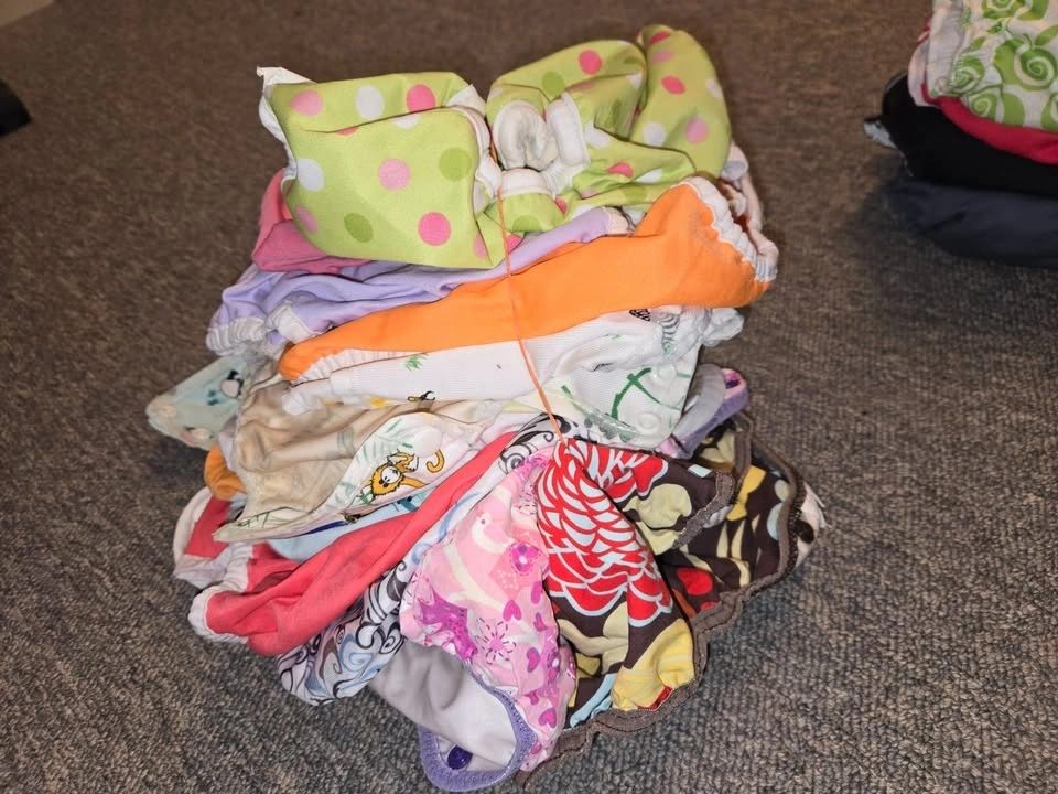 - 10 fitted diapers (mostly Urban Bums Boutique)- 2 very well worn and given free.