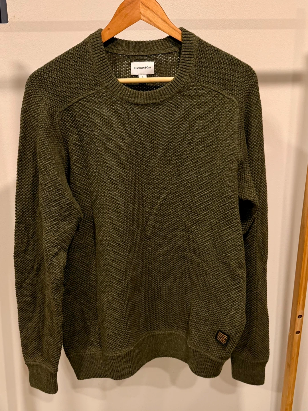 Selling a Frank And Oak knit sweater in a lovely green colour. It's a size large and in great condition. Perfect for staying cozy this fall and winter!