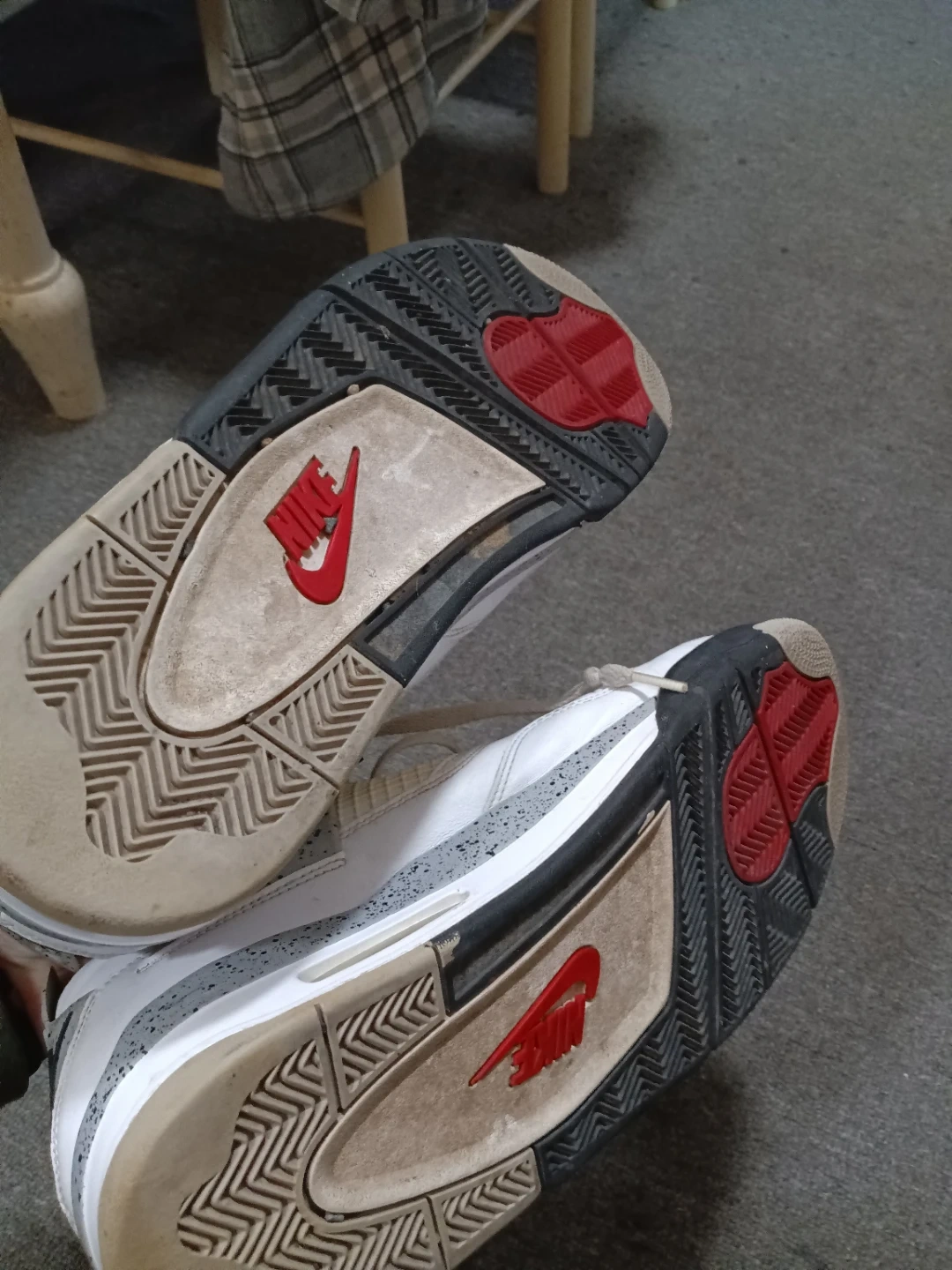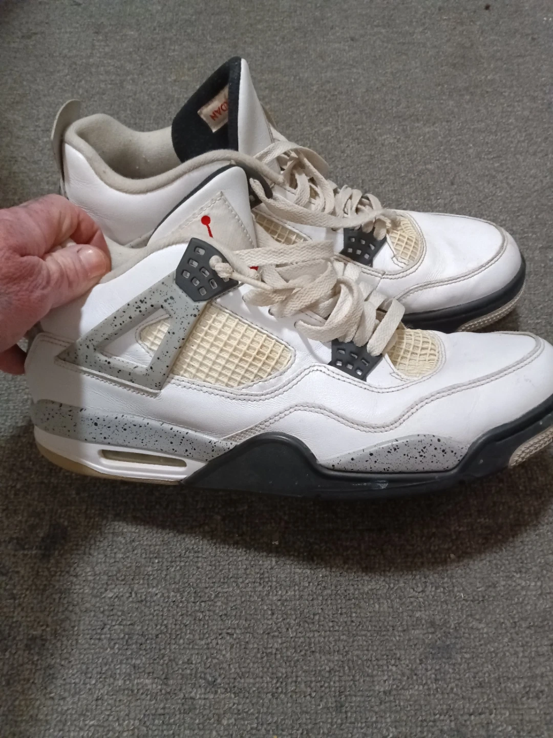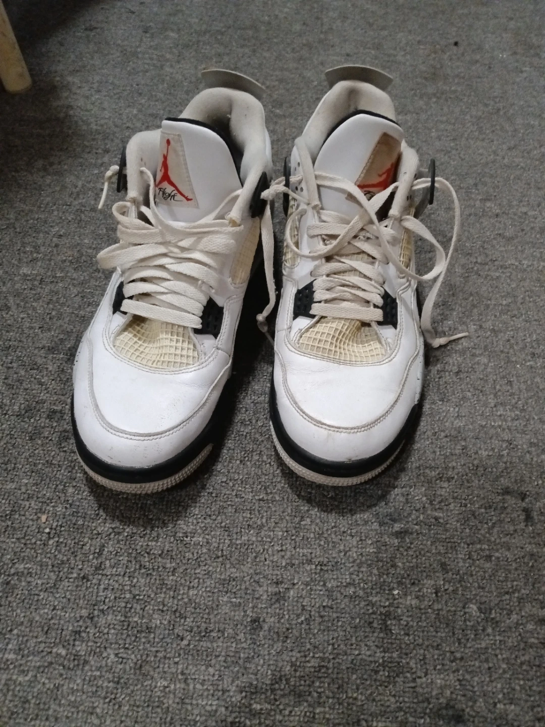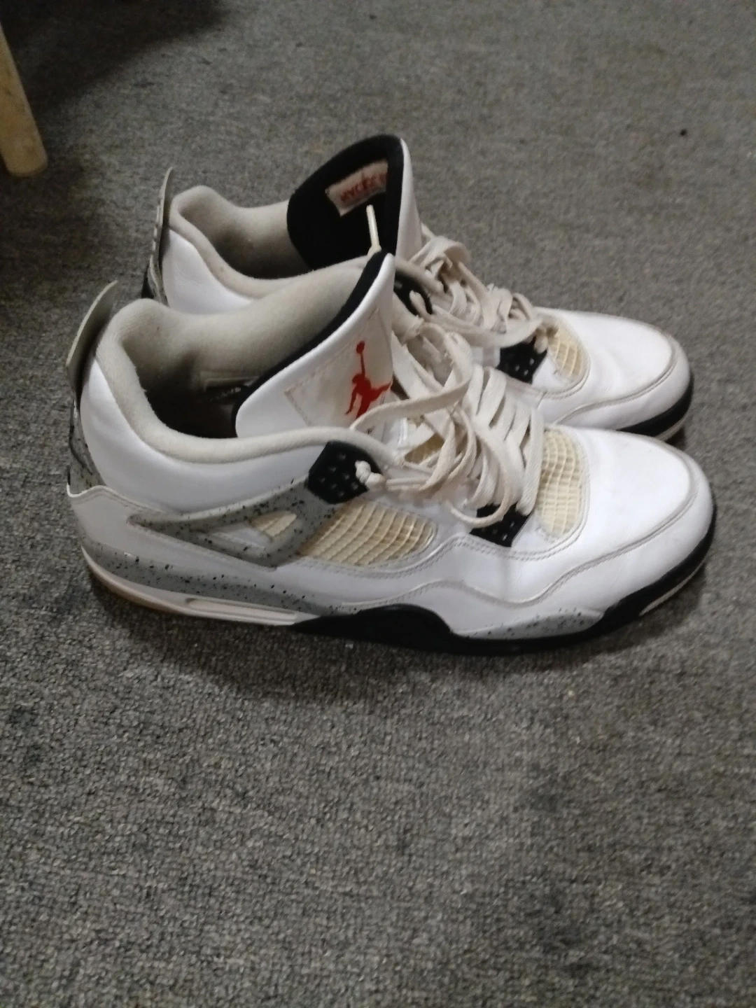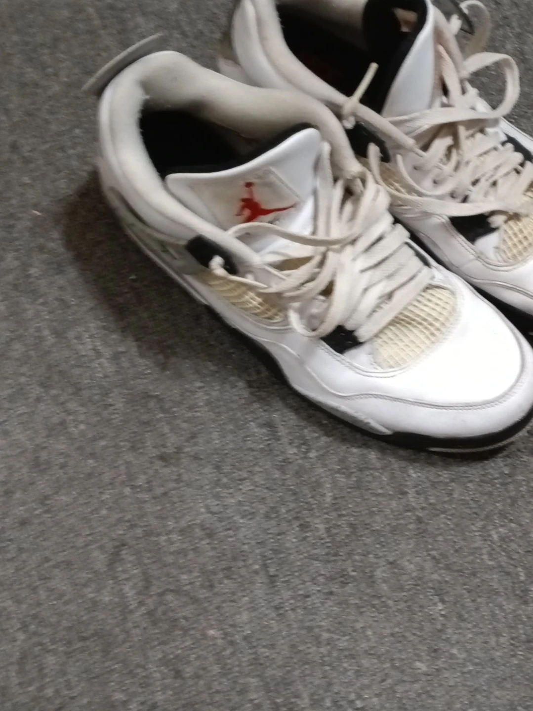 Selling a pair of Nike Air Jordan 4 Retro sneakers. They show signs of wear, as you can see in the pictures, but they still have a lot of life left in them. Perfect for casual wear or for playing basketball.