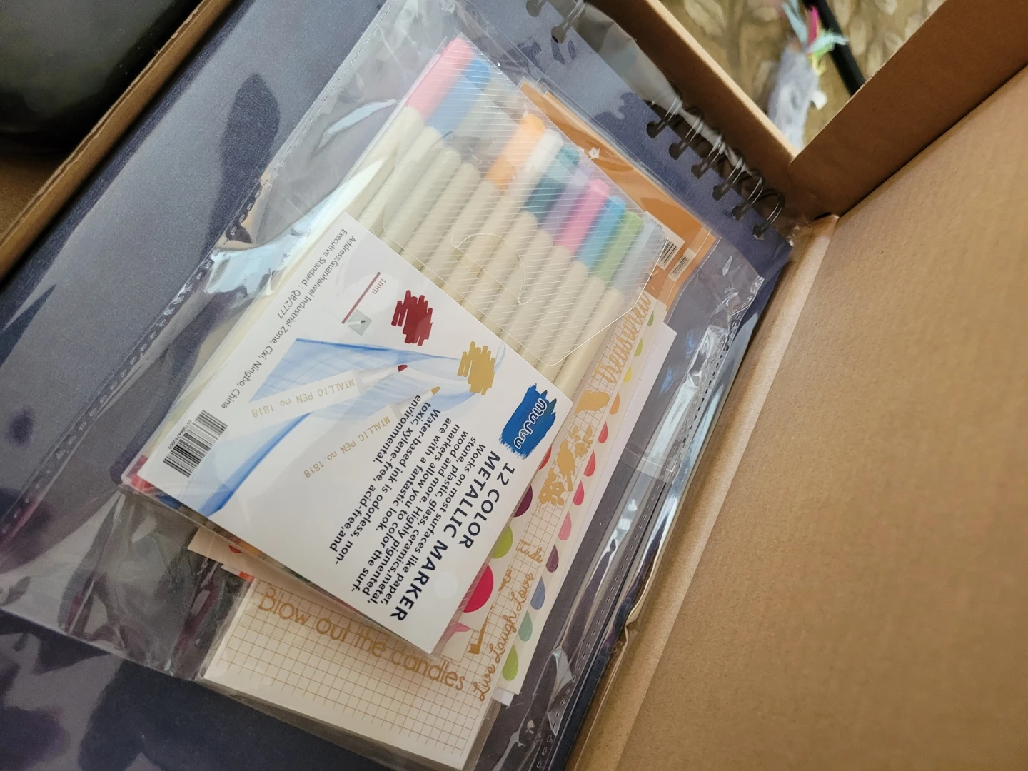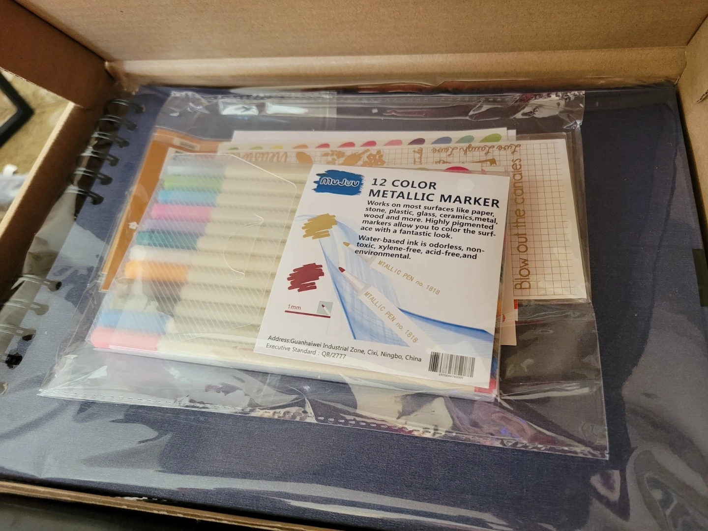 Includes 12 metallic markers , stickers and Black Paper Sketchbook