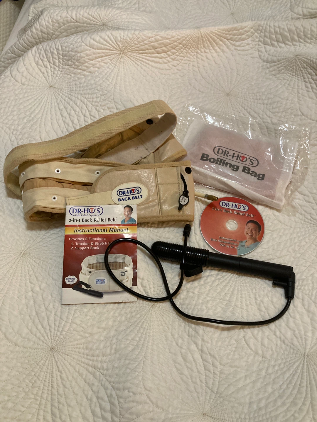 I'm selling a Dr-Ho's 2-in-1 Back Relief Belt! It comes with the boiling bag, instructional manual, and the support back. The size is 25-41.