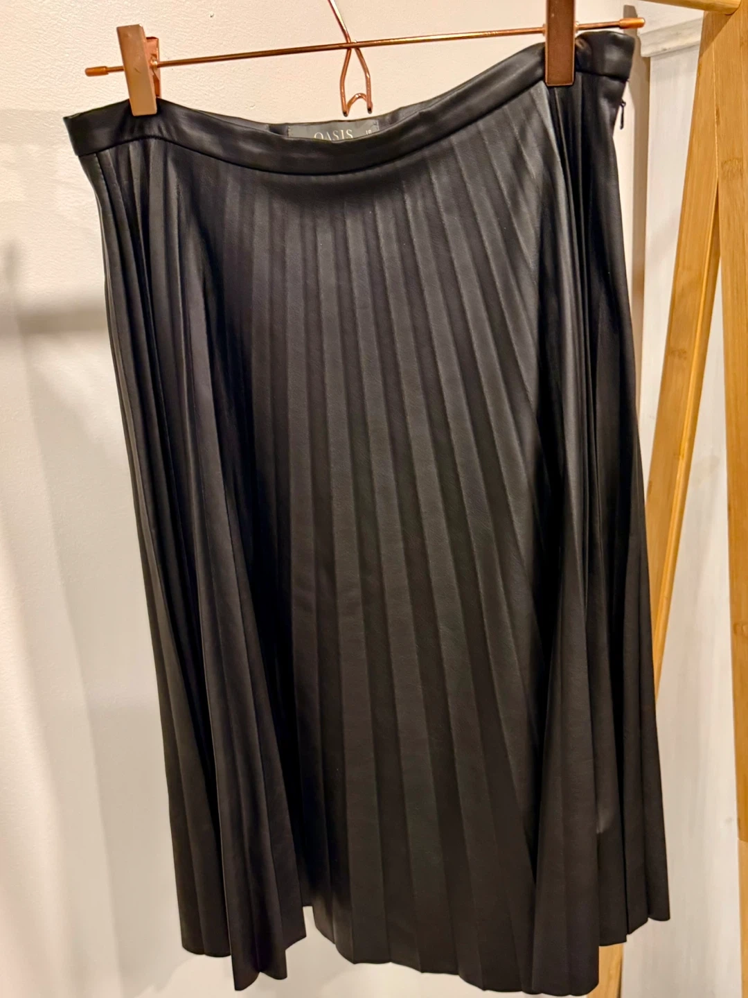 Selling a stylish black faux leather pleated skirt from Oasis. It's a uk size 10 so Canada size 6 and in great condition. Perfect for adding a bit of edge to your wardrobe!