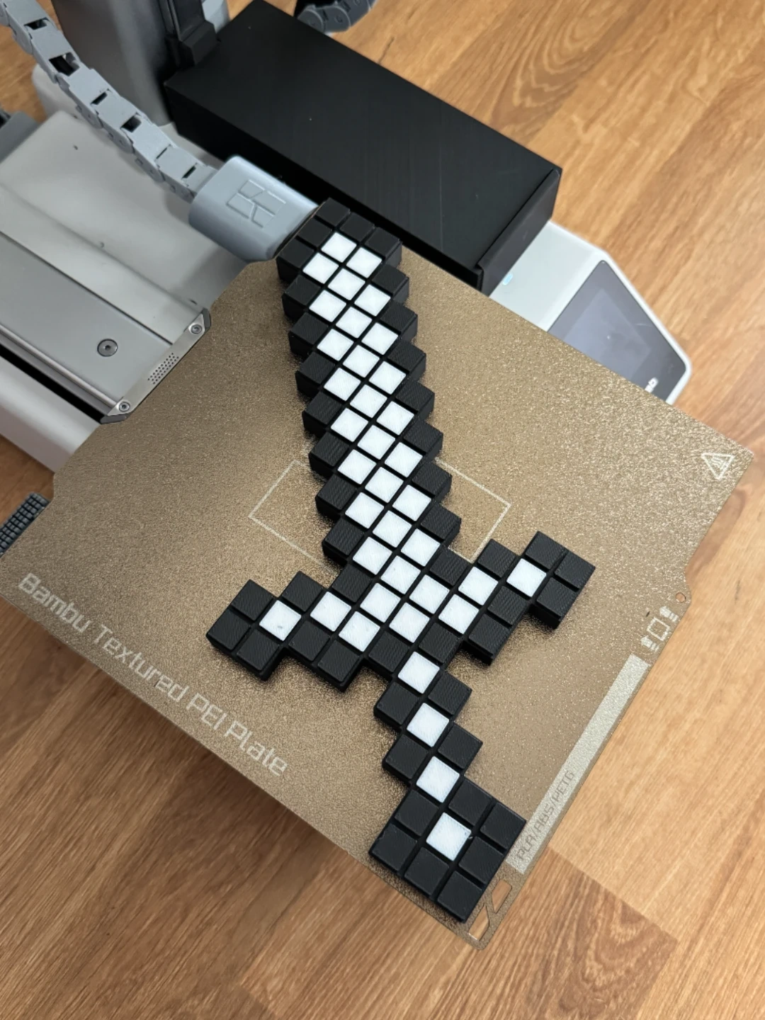 Selling a cool Minecraft sword made of pixel art! It's black and white and looks great as a decoration. Perfect for any Minecraft fan!