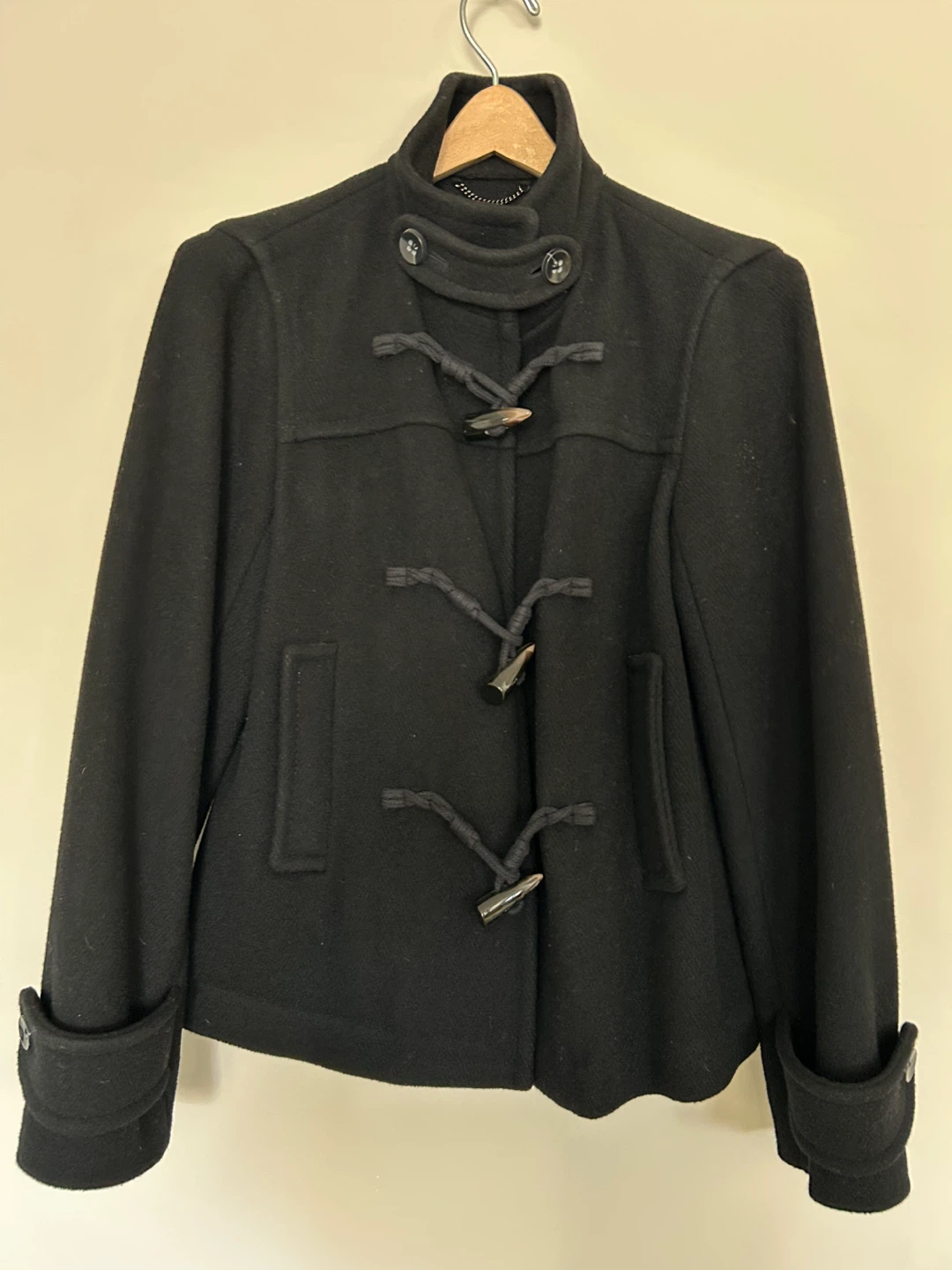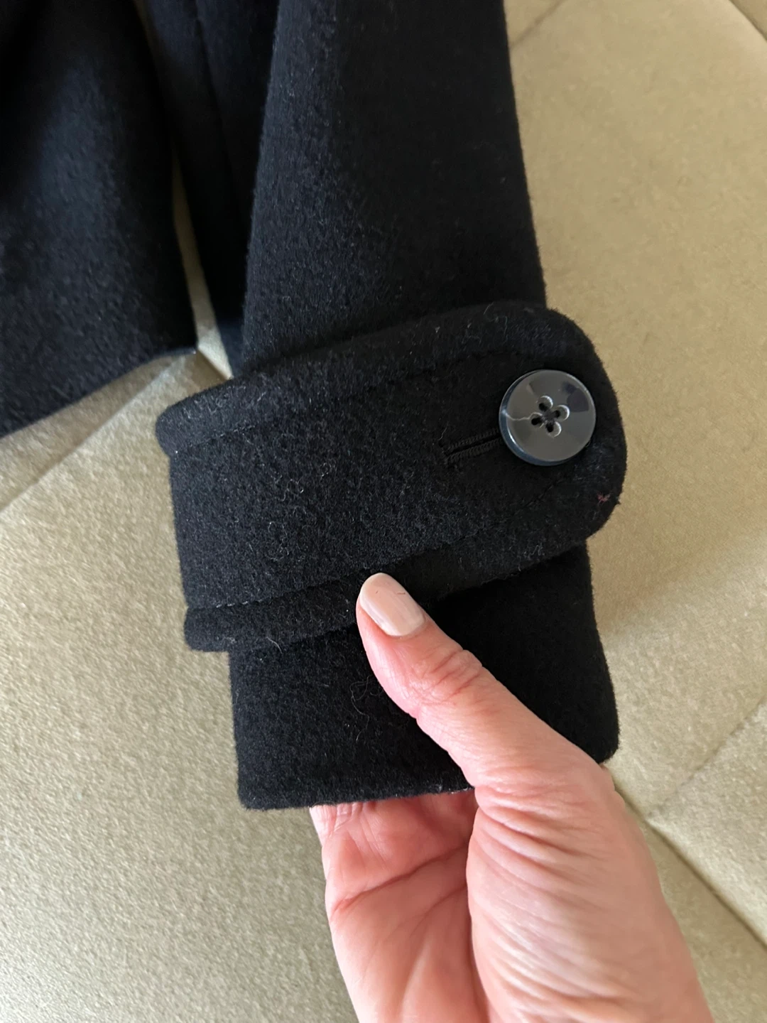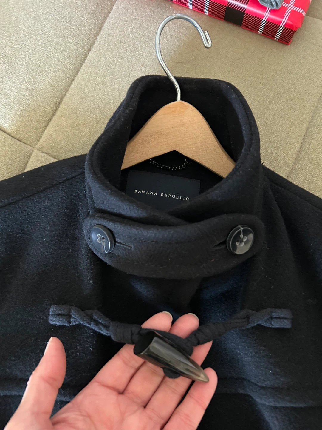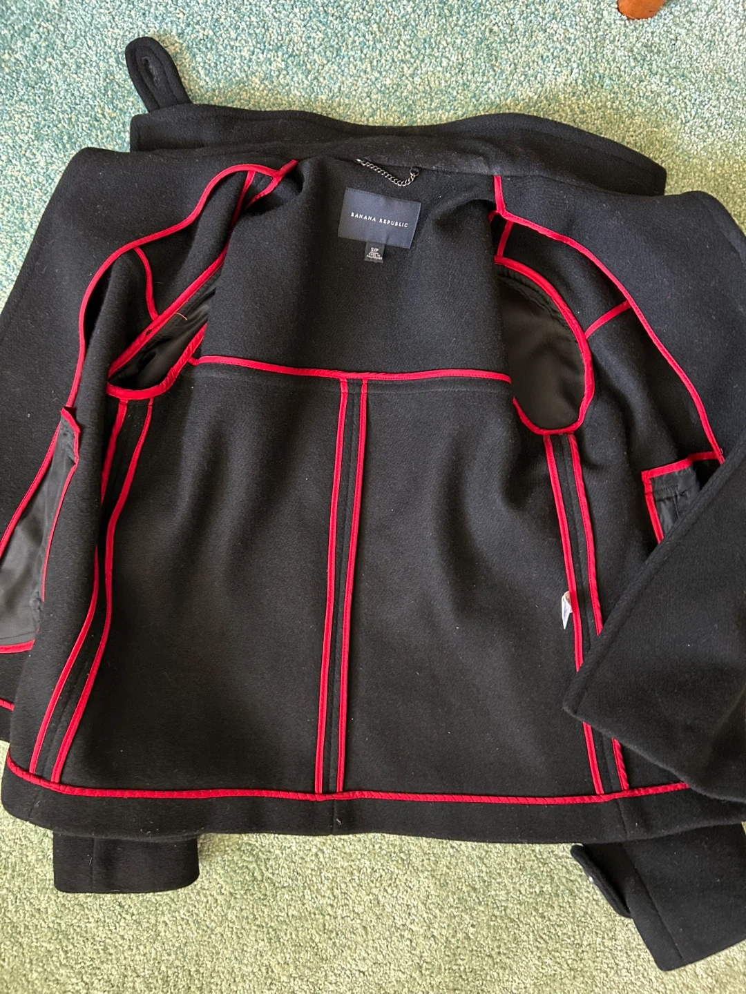 Banana Republic wool pea coat, black, women’s size small. Excellent condition. No pilling. Worn only a couple times because wool bothers my skin.