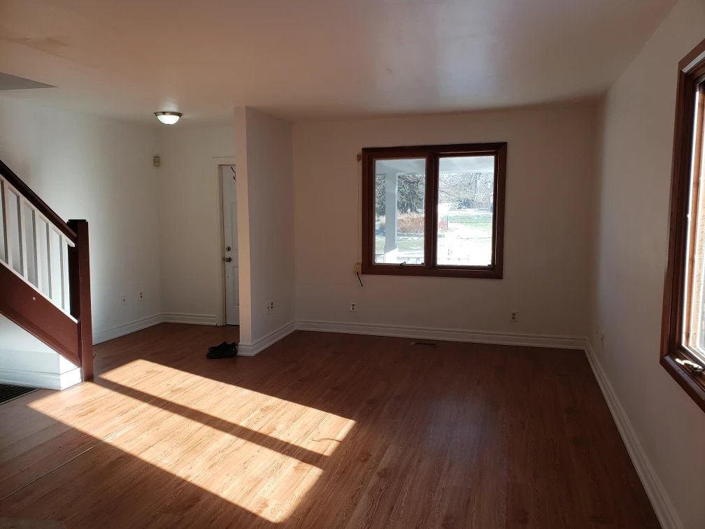 House for rent. Beautiful. Freshly painted. Large living room, dining room, family size kitchen, 2 large bedrooms on the second floor, fenced backyard. Bus stop in front of the house. Available immediately. Near Beaches area. Utilities are extra. Main and upper floor for rent. Basement is not available.