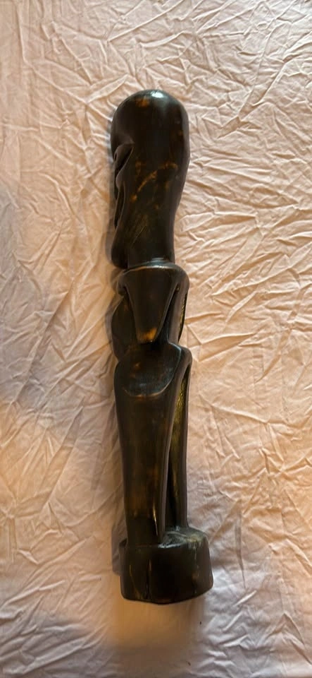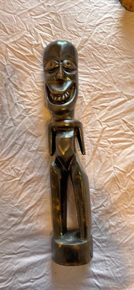 Hand-Carved Wooden Figurine – Smiling Tribal Style (22” x 4”)