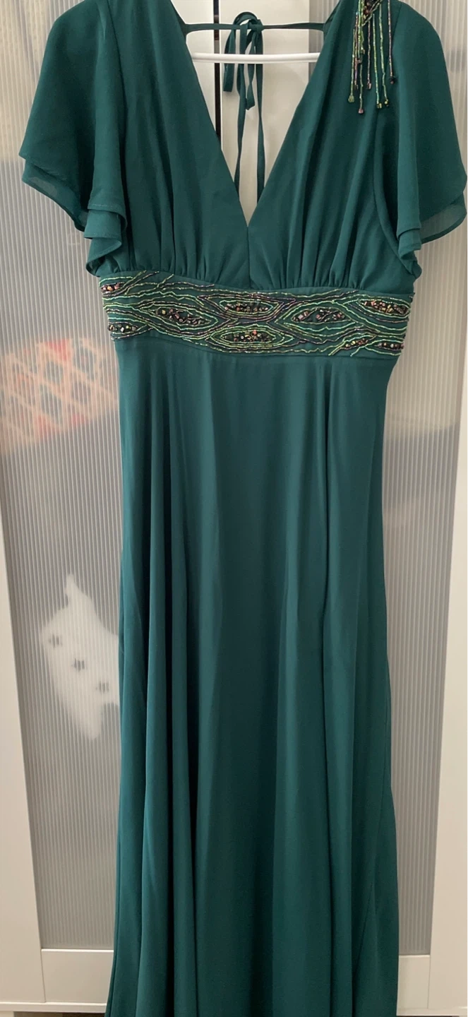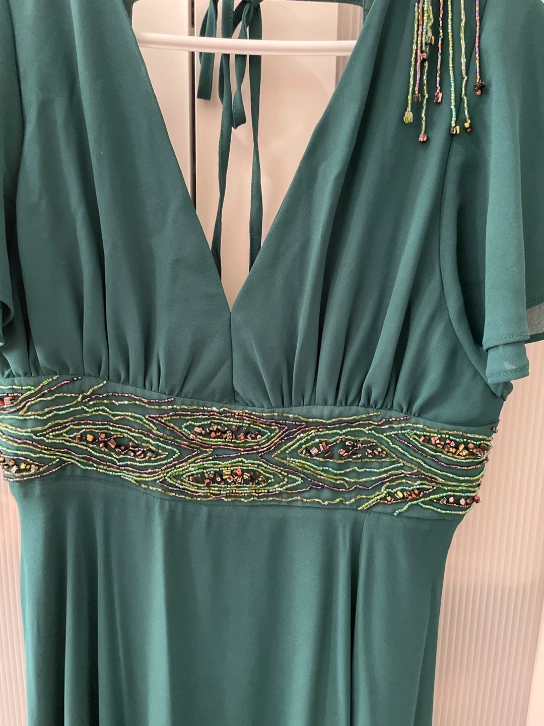 Selling a beautiful green maxi dress from Shein! It's a size L (EU 40/42, US 8/10) and features lovely beaded detailing around the waist. Perfect for a special occasion or a night out