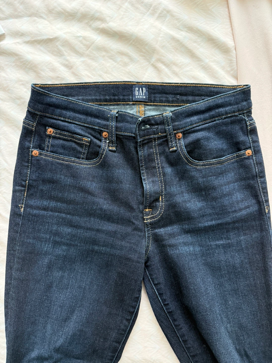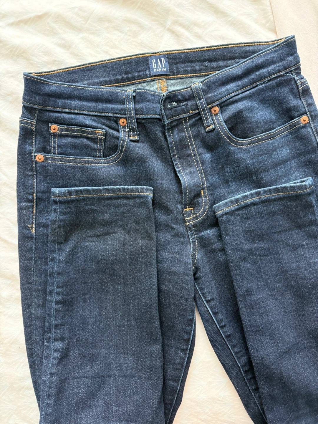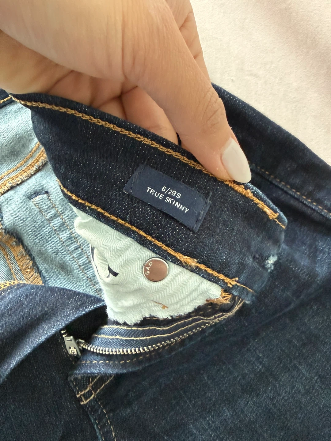 Selling a pair of GAP Denim True Skinny Jeans. They are a size 6/28 and have a dark wash. These jeans are in great condition and ready for a new owner!