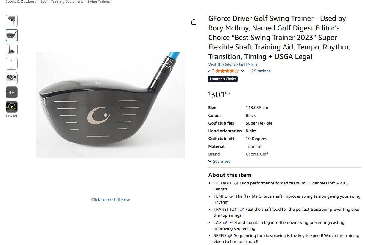 Brand new GForce driver golf swing trainer for sale. Used by Rory McIlroy, super flexible shaft training aid, tempo, rhythm, transition, timing, 10 degrees, 44.5” inches in length, right handed, free PGA training videos on Youtube. $190 FIRM.