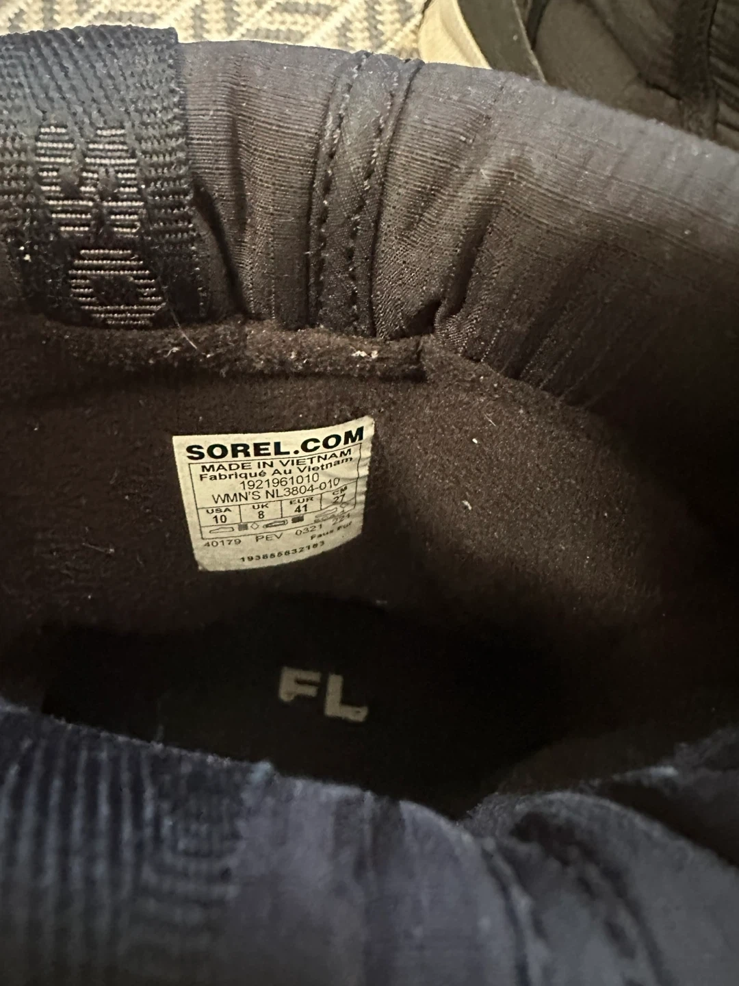 #gifting a pair of Sorel women's winter boots, model NL3804-010. They are black and in great shape. The size is US 10, EUR 41.
