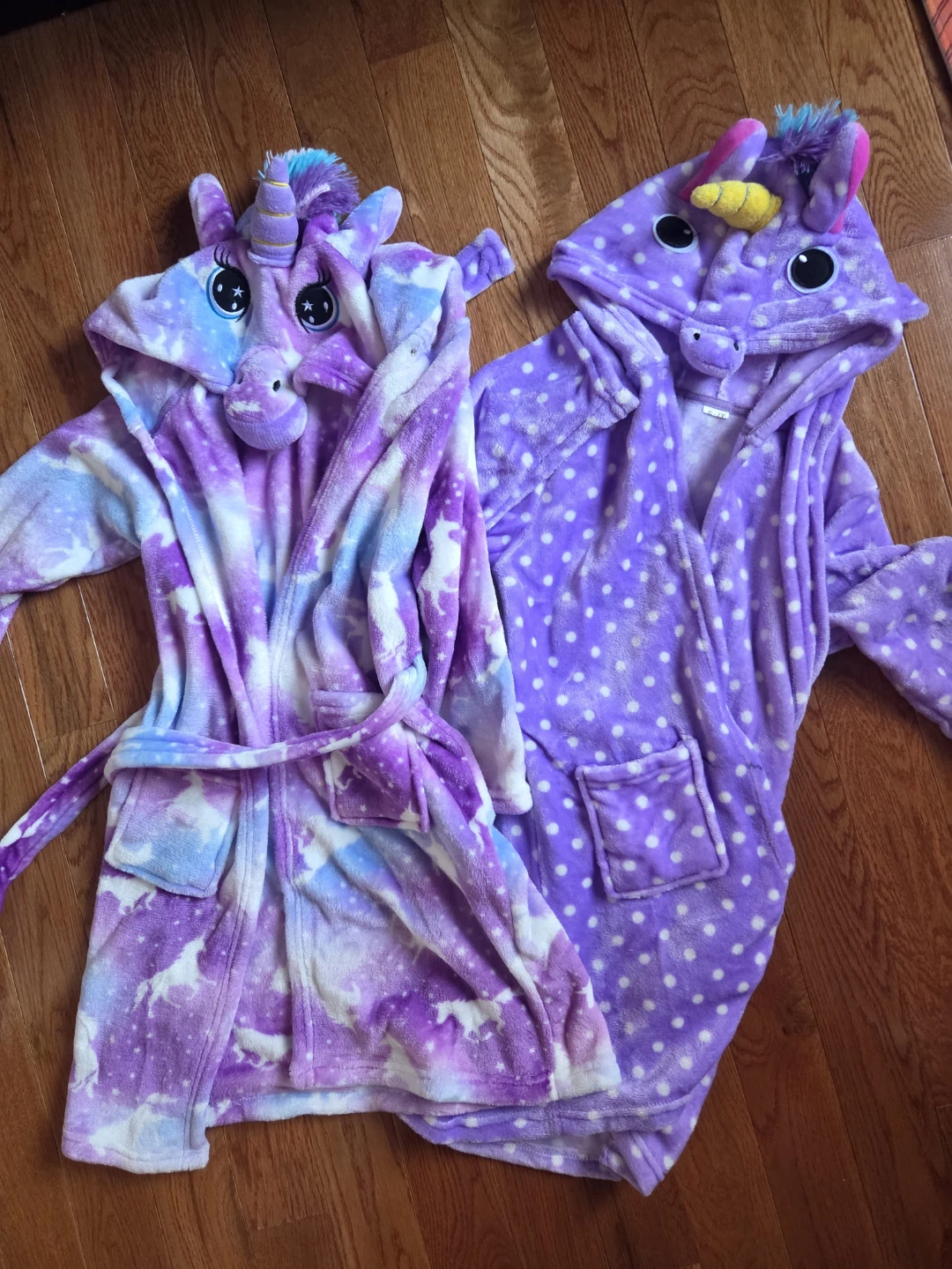 Plush Unicorn robes - perfect for staying warm for movie nights or in the winter!