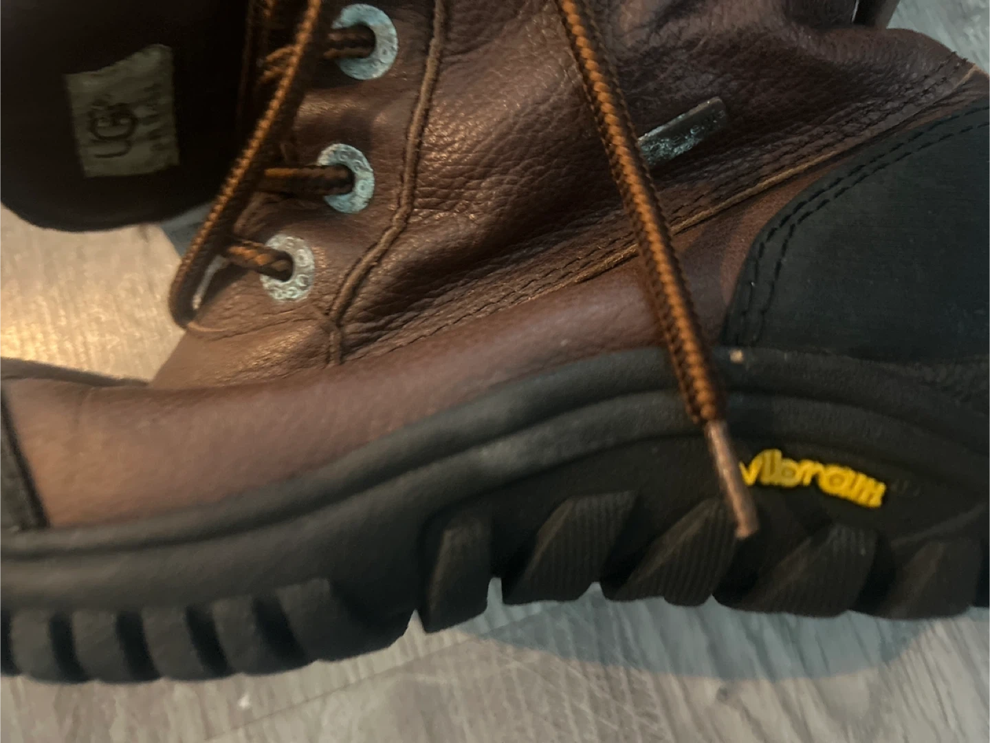 Selling a pair of UGG Australia boots in brown leather. They feature a Vibram sole for great traction. Size women 6.