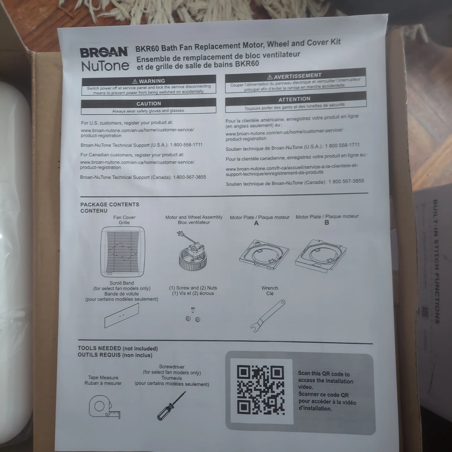 Selling a new Broan NuTone BKR60 bath fan replacement cover and motor kit! This kit is designed for a 10-minute easy install and is up to 50% quieter with up to 20% more power. The box includes the fan cover, motor and wheel assembly, motor plate A, and motor plate B. It also includes a scroll band (for select fan models only), screw(s) and nut(s), and a wrench. PICK UP ONLY @ ST Francis church...Greenlawn N.Y.