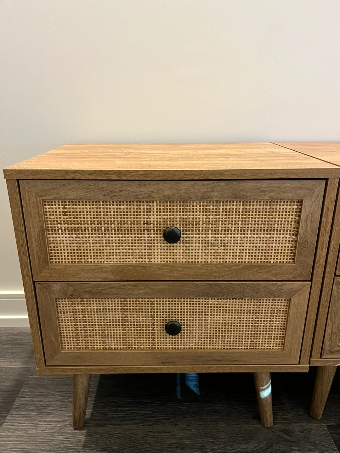 Selling a set of two rattan nightstands. They're in good condition and would look great in any bedroom!